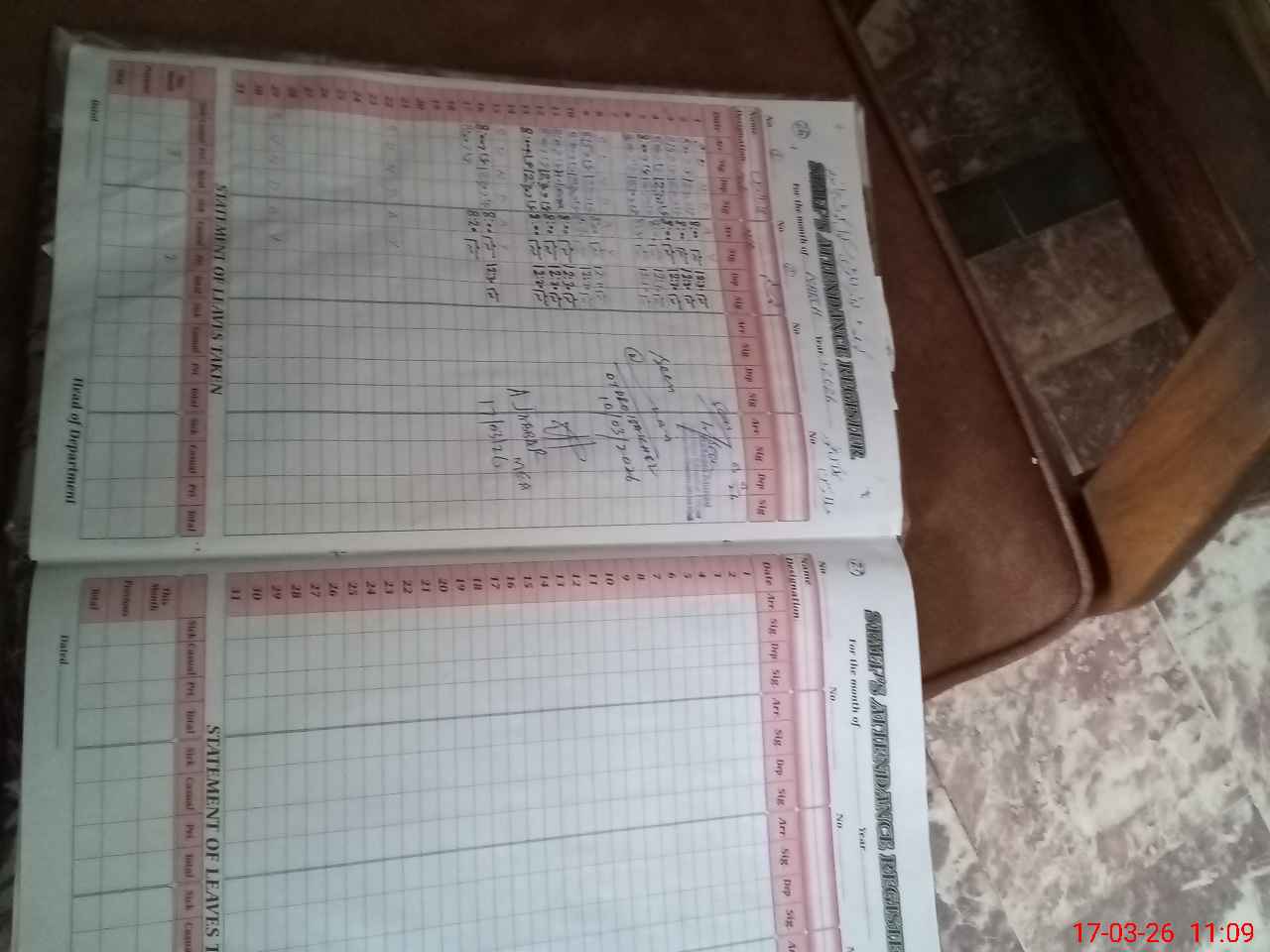 | CNIC | Full Name | Designation | R/C | Absence During Last Calender Month |