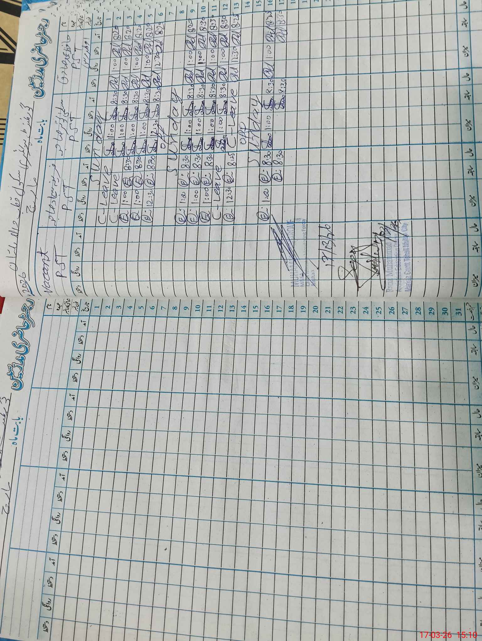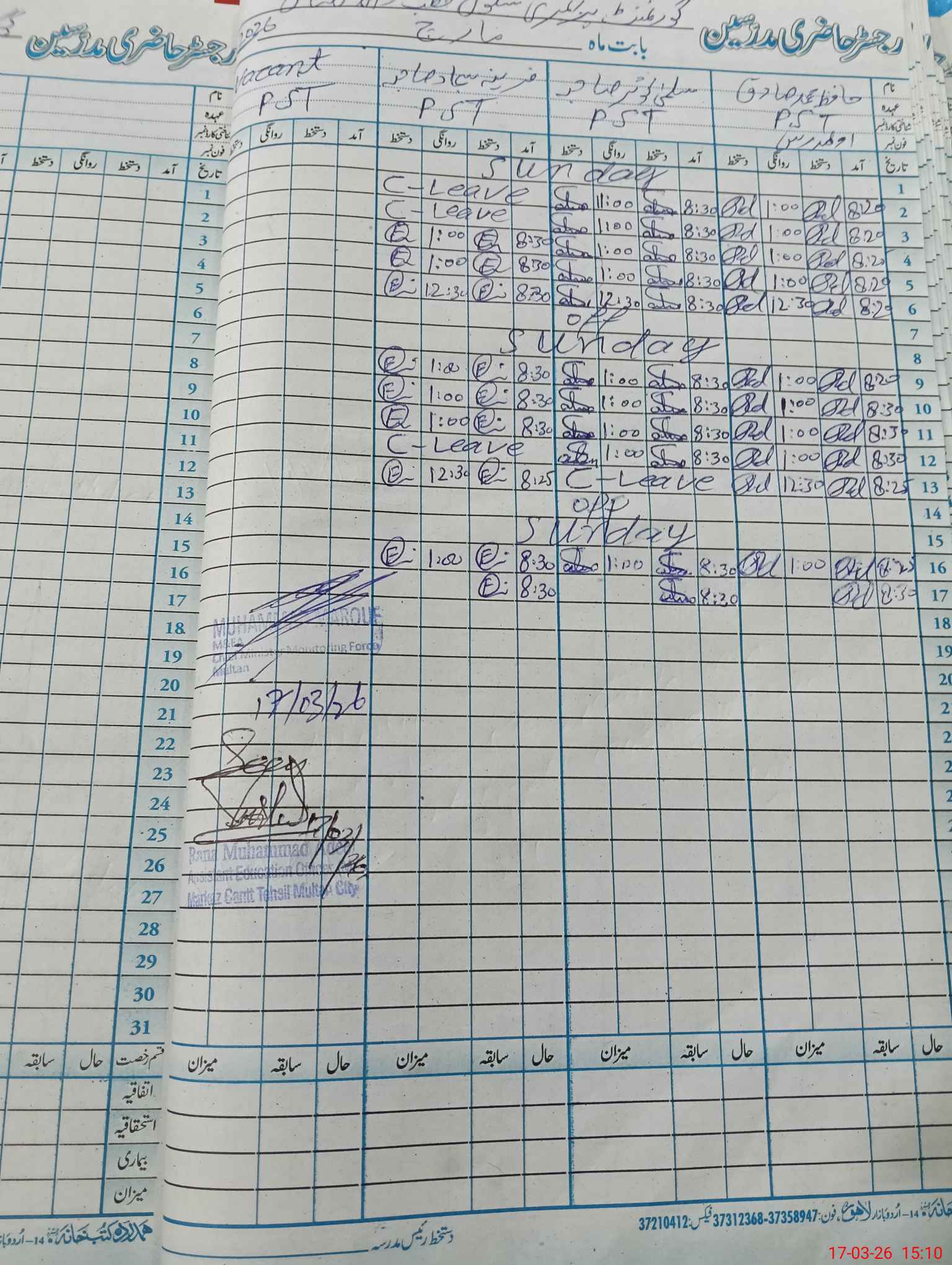 | CNIC | Full Name | Designation | R/C | Absence During Last Calender Month |