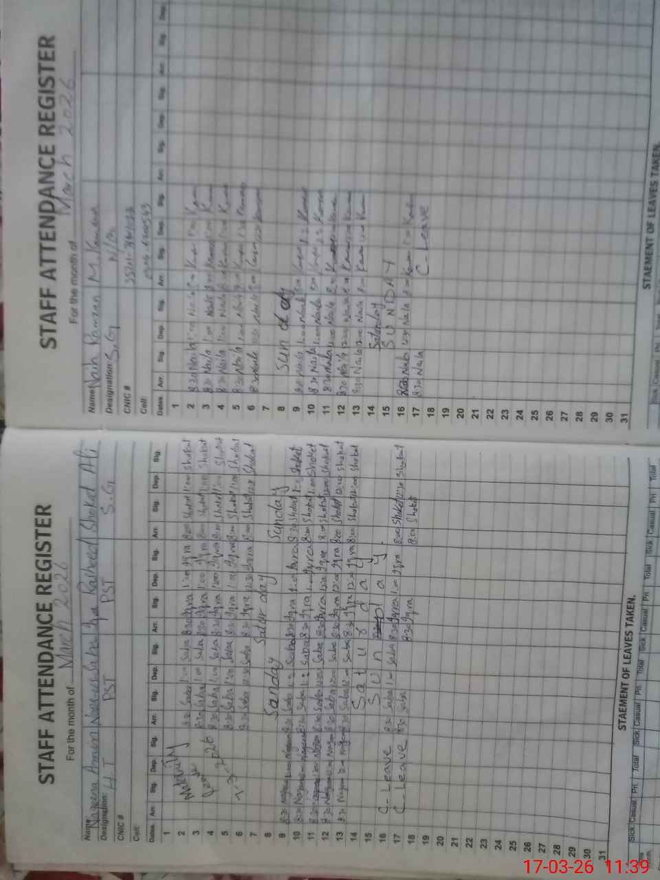 | 35**** | Mu**** Ka**** | NAIB QASID | Regular | 1 | 0 | 0 | 0 | 0 | 0 | 0 | 0 | 1 | Absent (Un-Authorized) |