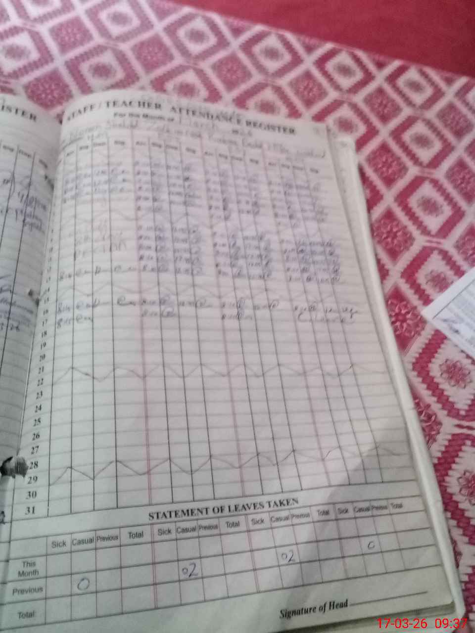 | Attendance Register | Head Teacher | MEA with School | Visit Proof |