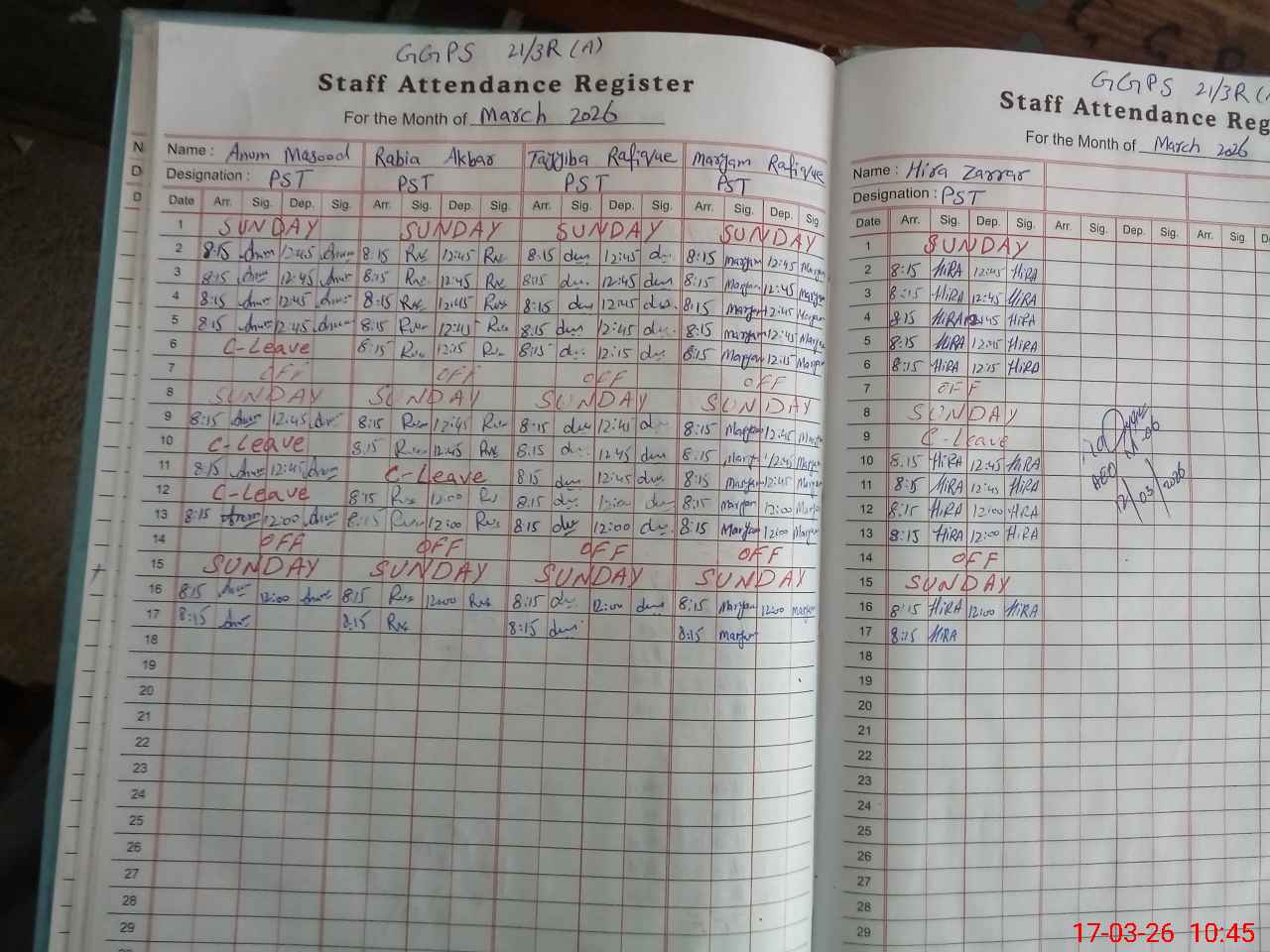 | Leave | Duty | Absent | Maternity | Medical | Ex- Pak |