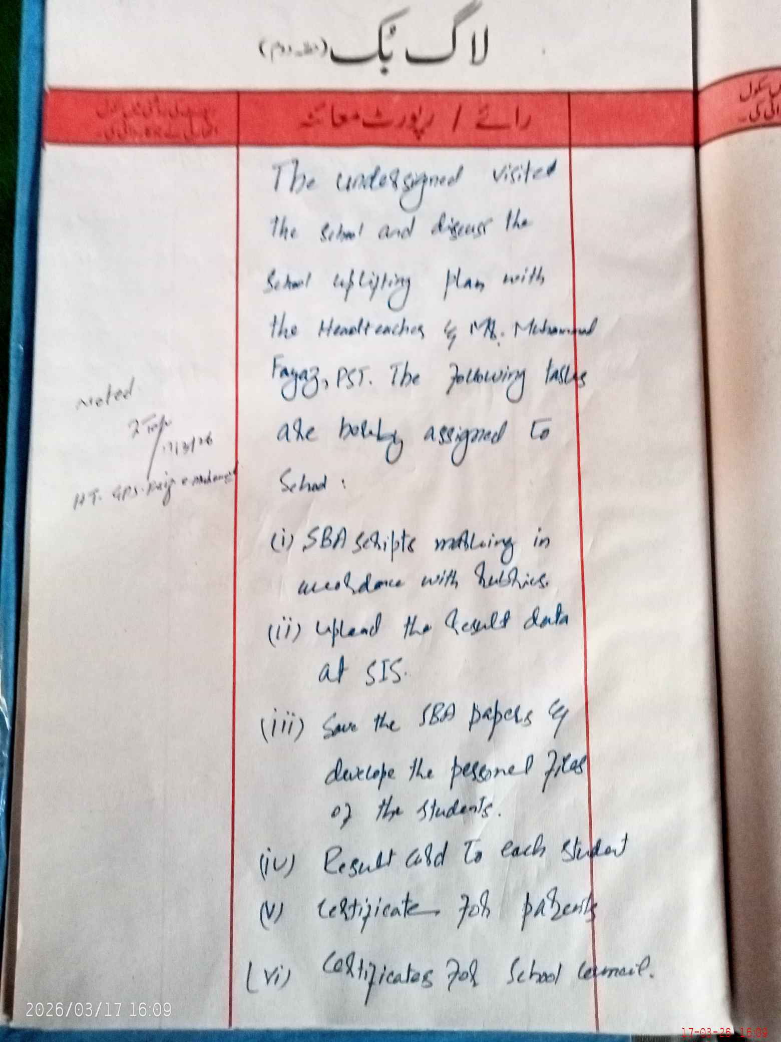 | Certified that this School was Inspected by the Undersigned MEA/DMO Today and the Information Stated Above is as Per Record. | |||||