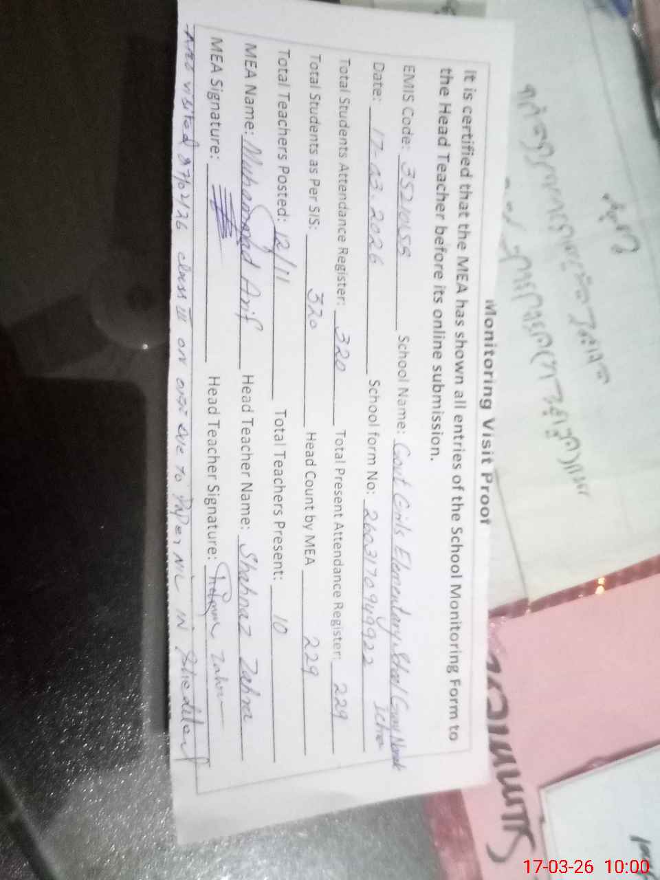 | Certified that this School was Inspected by the Undersigned MEA/DMO Today and the Information Stated Above is as Per Record. | |||||