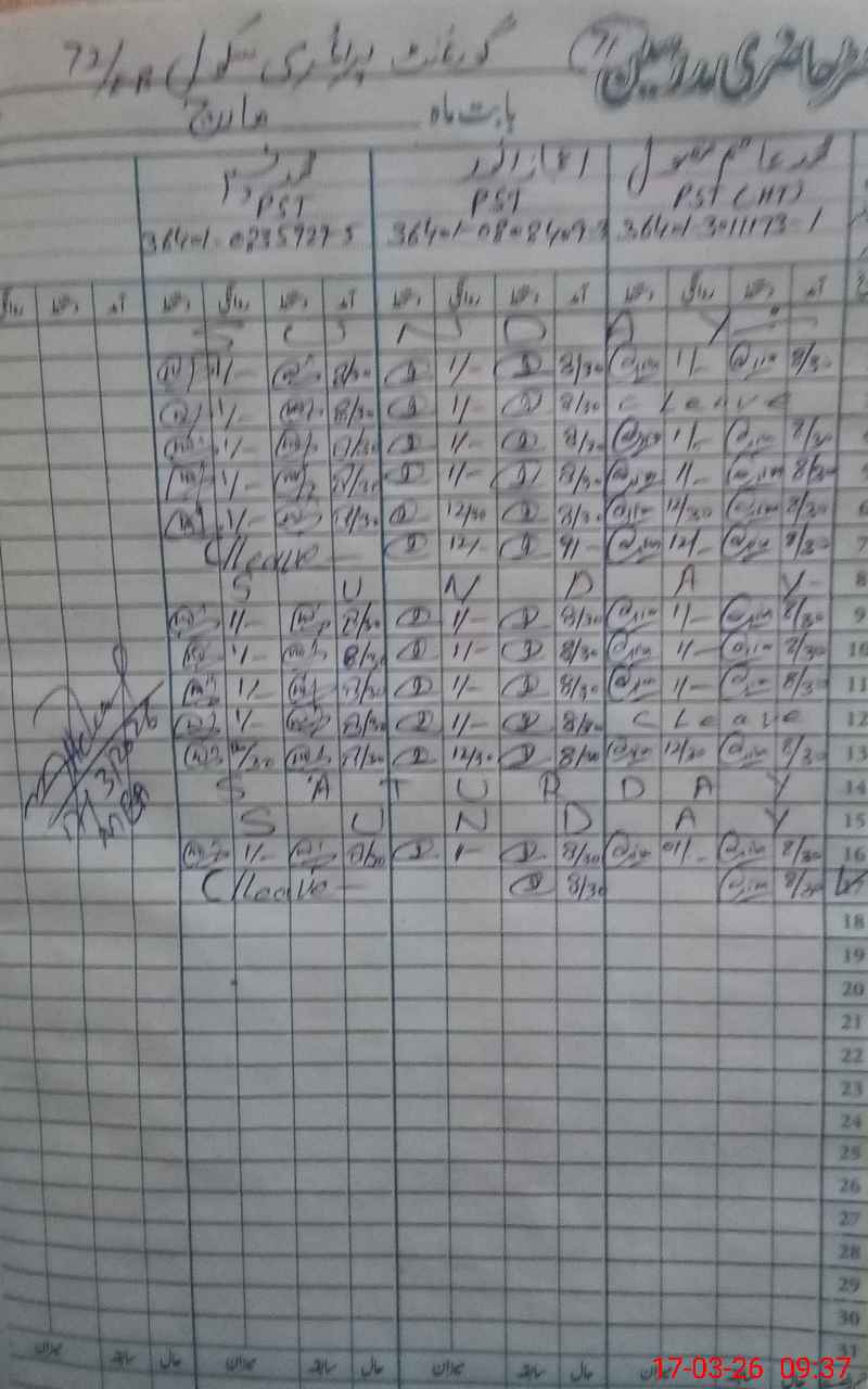 | 36**** | Mu**** Na**** | PST Arts | Regular | 0 | 0 | 0 | 0 | 0 | 0 | 0 | 0 | 0 | Casual |