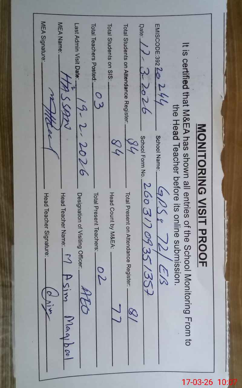 | EMIS Code: 39220244 | Name of School: GPS 72 EB | |||