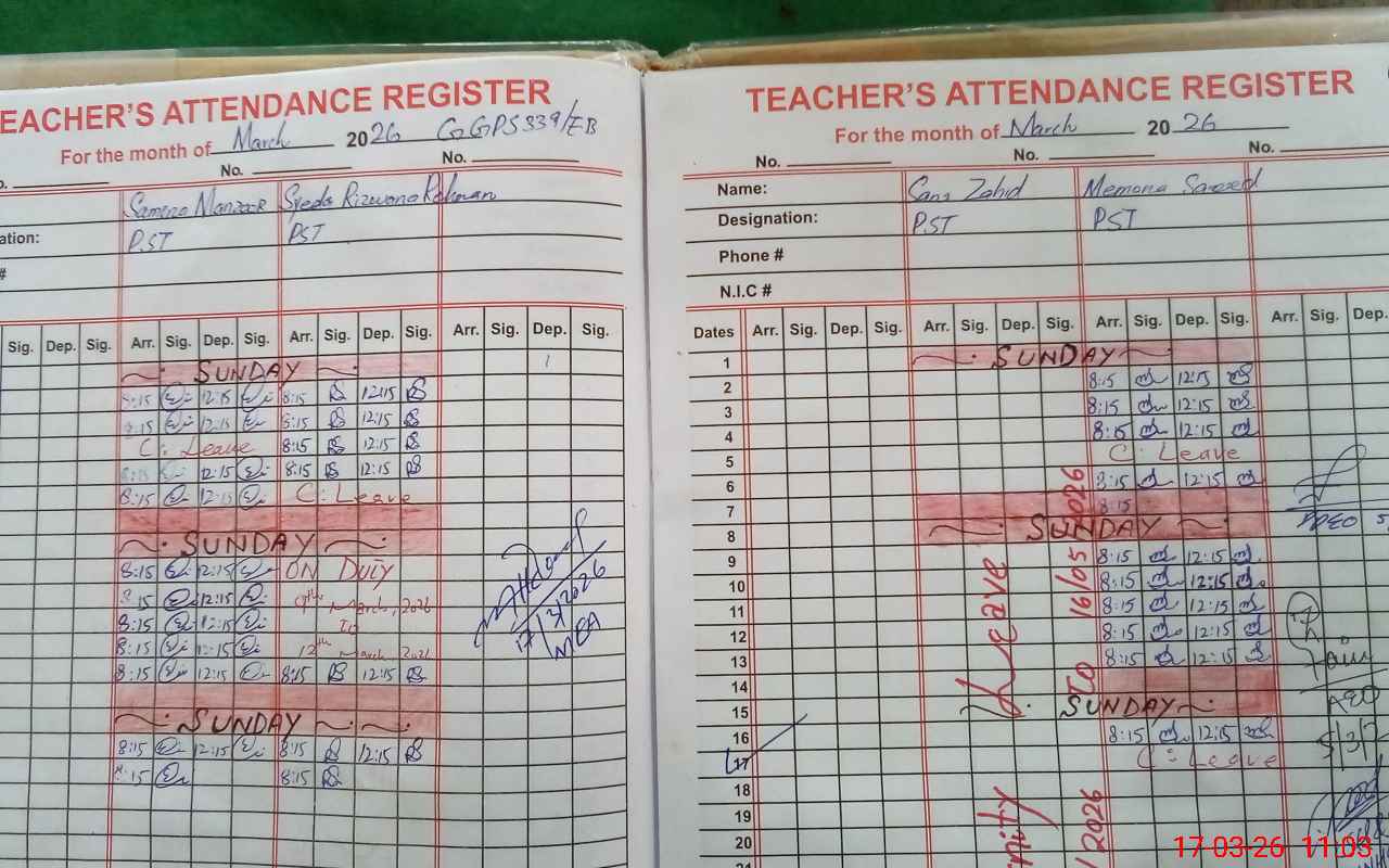 | Name: SA**** MA**** Designation: (School Headmaster's/Headmistress's) PST Phone/Cell Number: 03**** |