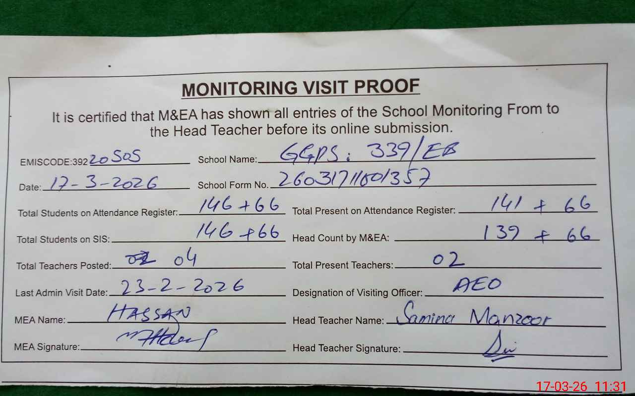 | EMIS Code: 39220505 | Name of School: GGPS CHAK NO.339/EB | |||