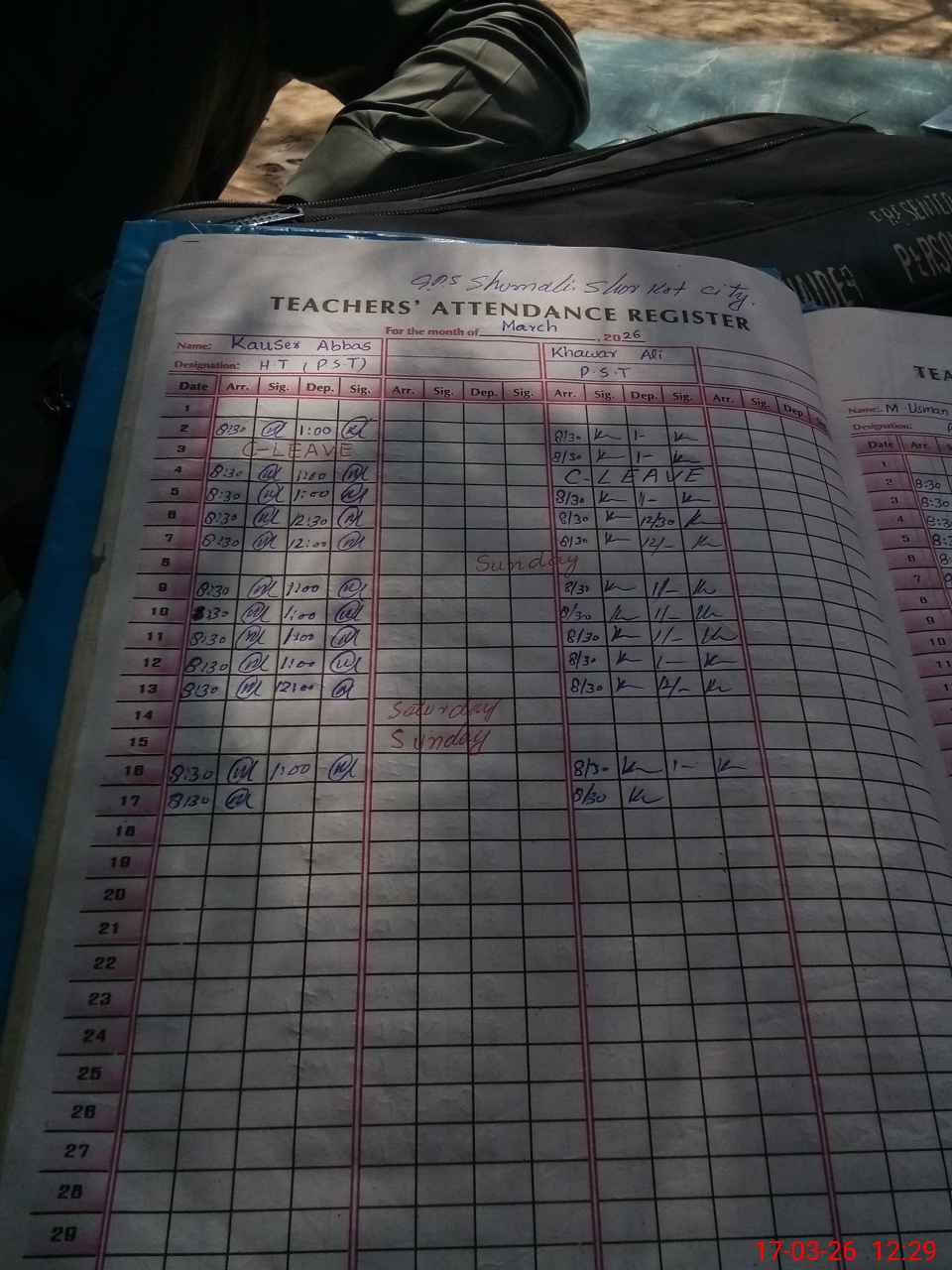| Name: KA**** AB**** Designation: (School Headmaster's/Headmistress's) PST Phone/Cell Number: 03**** |