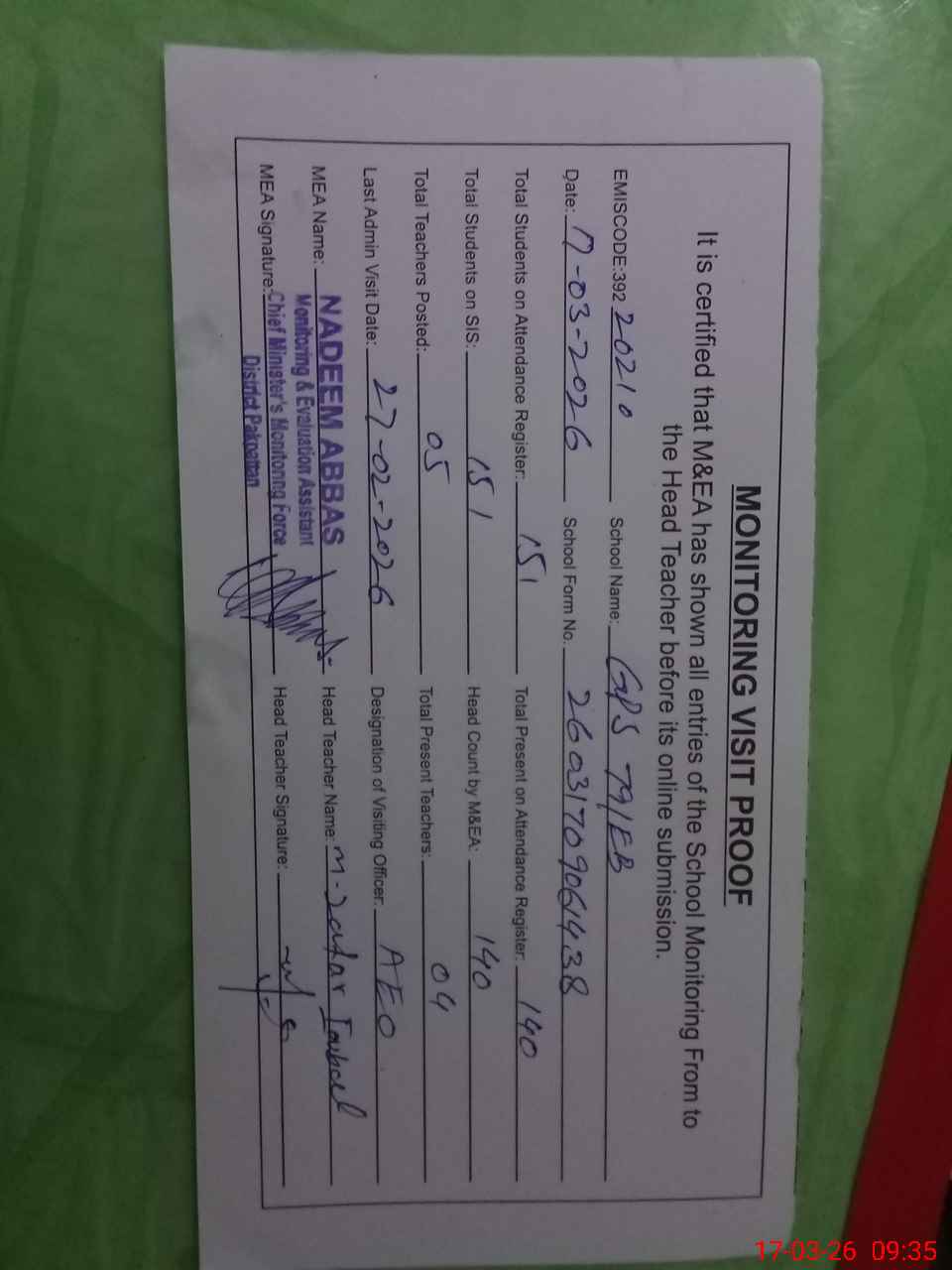 | EMIS Code: 39220210 | Name of School: GPS 79 EB | |||