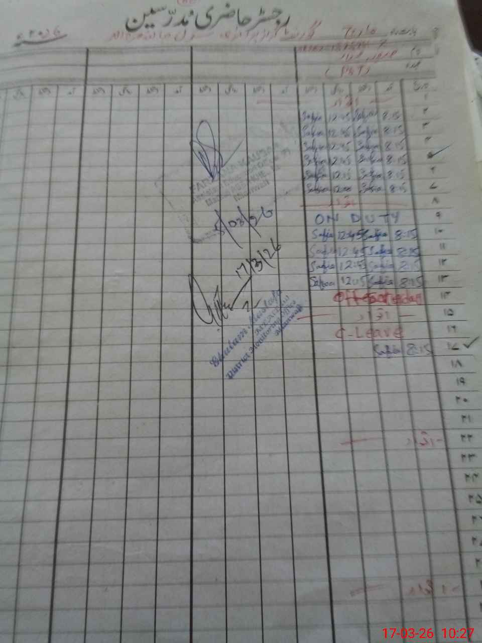 | Name: Zu**** Bi**** Designation: (School Headmaster's/Headmistress's) PST Phone/Cell Number: 03**** |