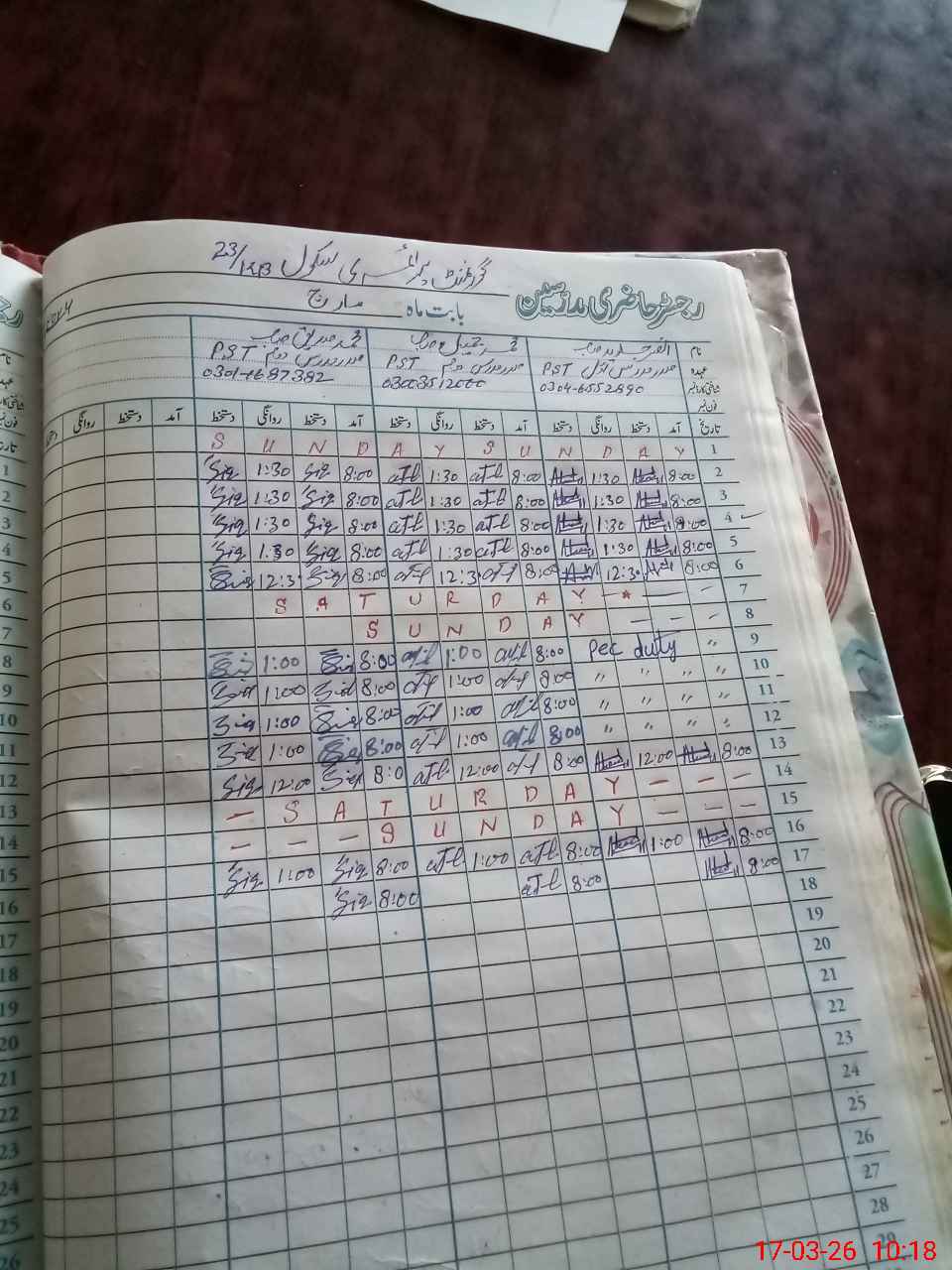 | Name: AN**** JA**** Designation: (School Headmaster's/Headmistress's) PST Phone/Cell Number: 03**** |