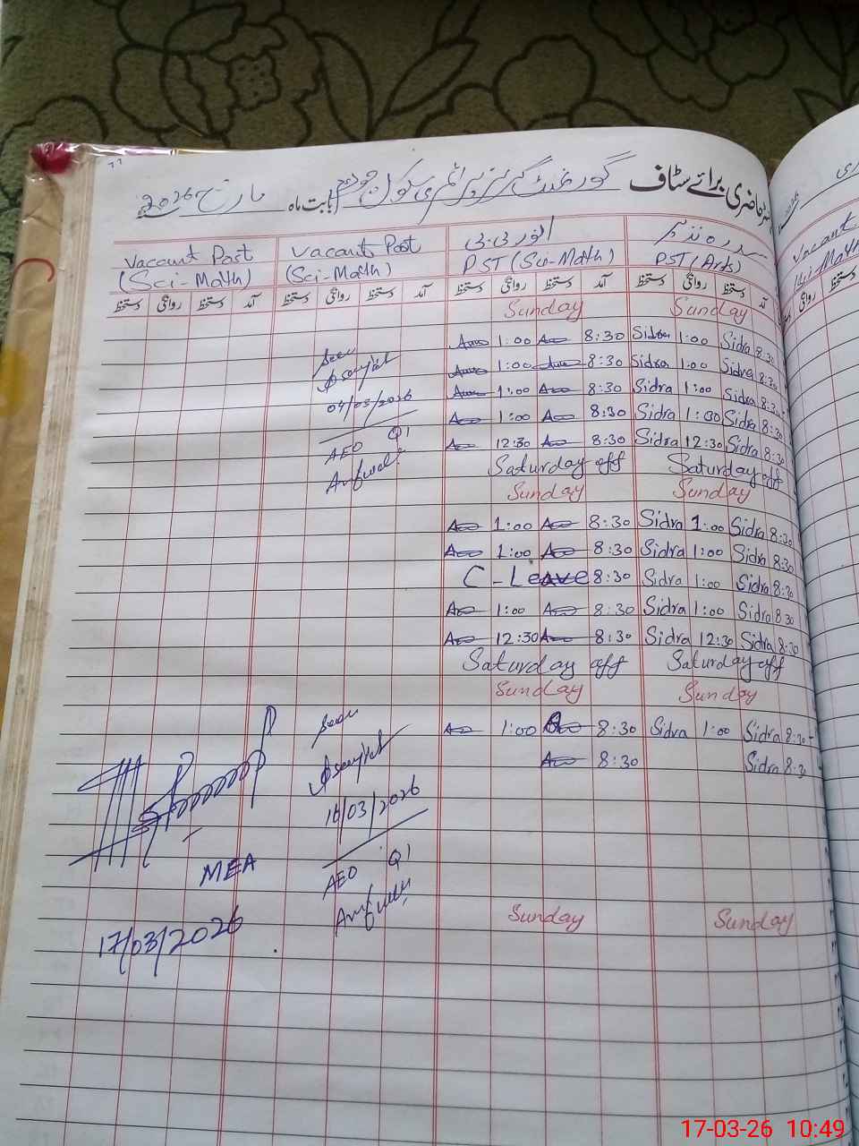 | Name: SI**** NA**** Designation: (School Headmaster's/Headmistress's) PST Phone/Cell Number: 03**** |