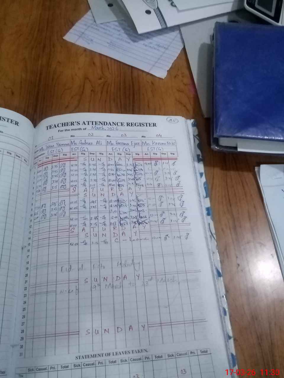 | 37**** | Su**** Ba**** | PST Science/Maths | Regular | 0 | 0 | 0 | 0 | 0 | 0 | 0 | 0 | 0 | Maternity |