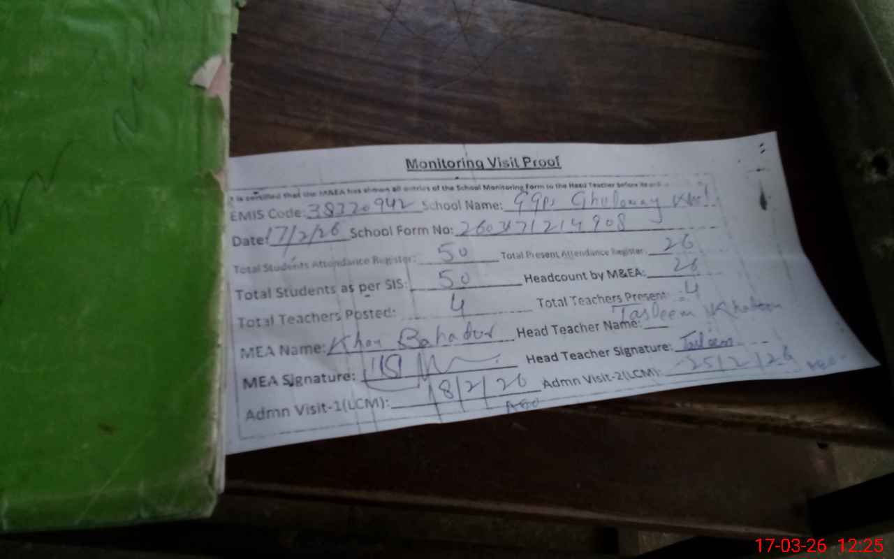 | EMIS Code: 38320942 | Name of School: GGPS GHULAMEY KHEL ROKHRI MIANWALI | |||