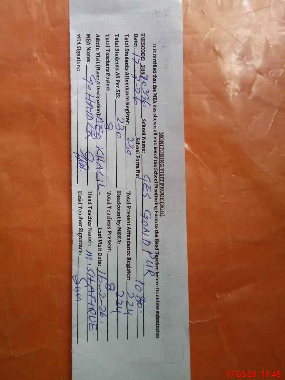 | EMIS Code: 38470396 | Name of School: GES GOND PUR | |||