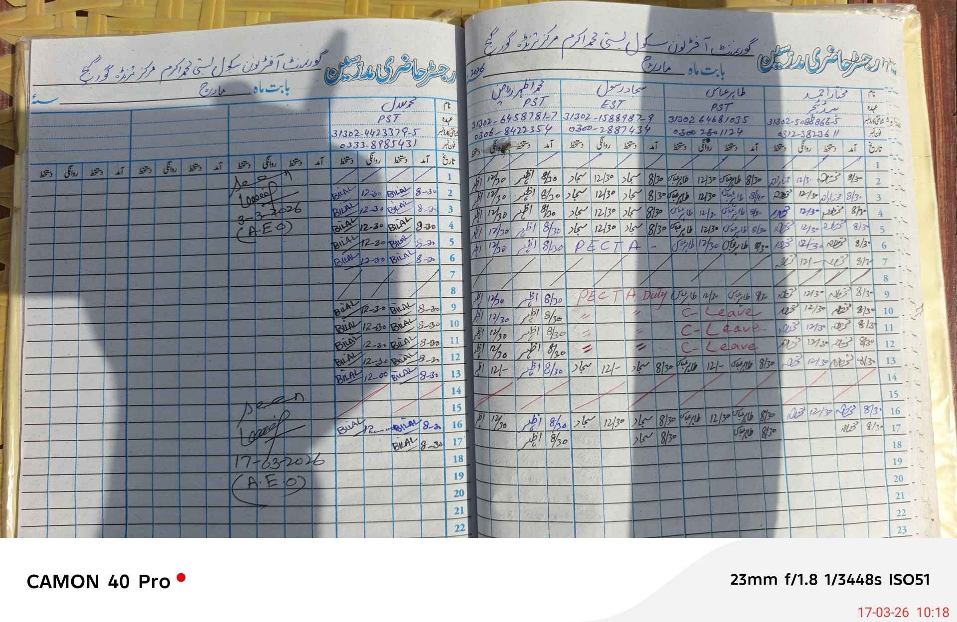 | Name: MU**** AH**** Designation: (School Headmaster's/Headmistress's) PST Phone/Cell Number: 03**** |