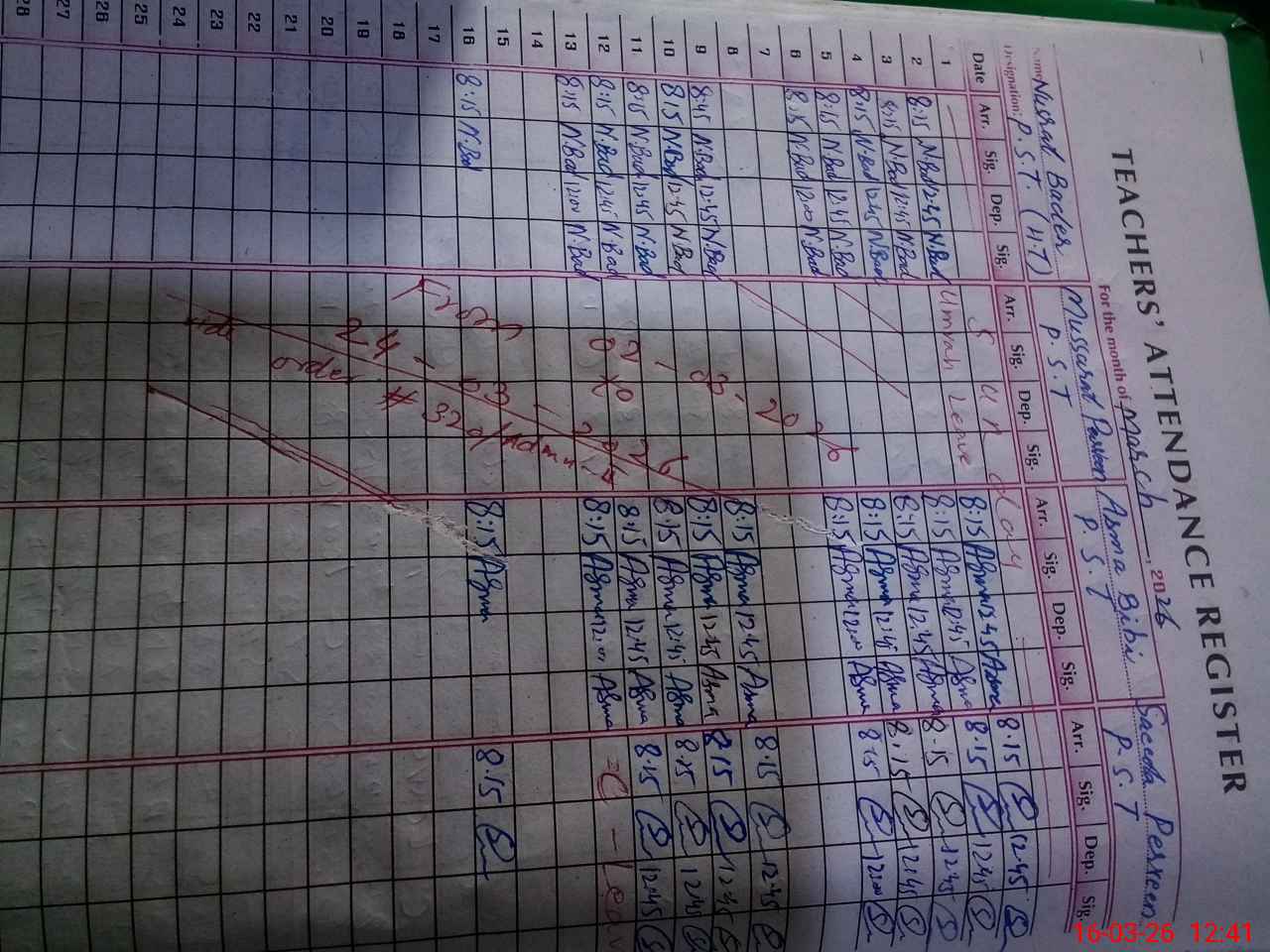 | Name: NU**** BA**** Designation: (School Headmaster's/Headmistress's) PST Phone/Cell Number: 03**** |