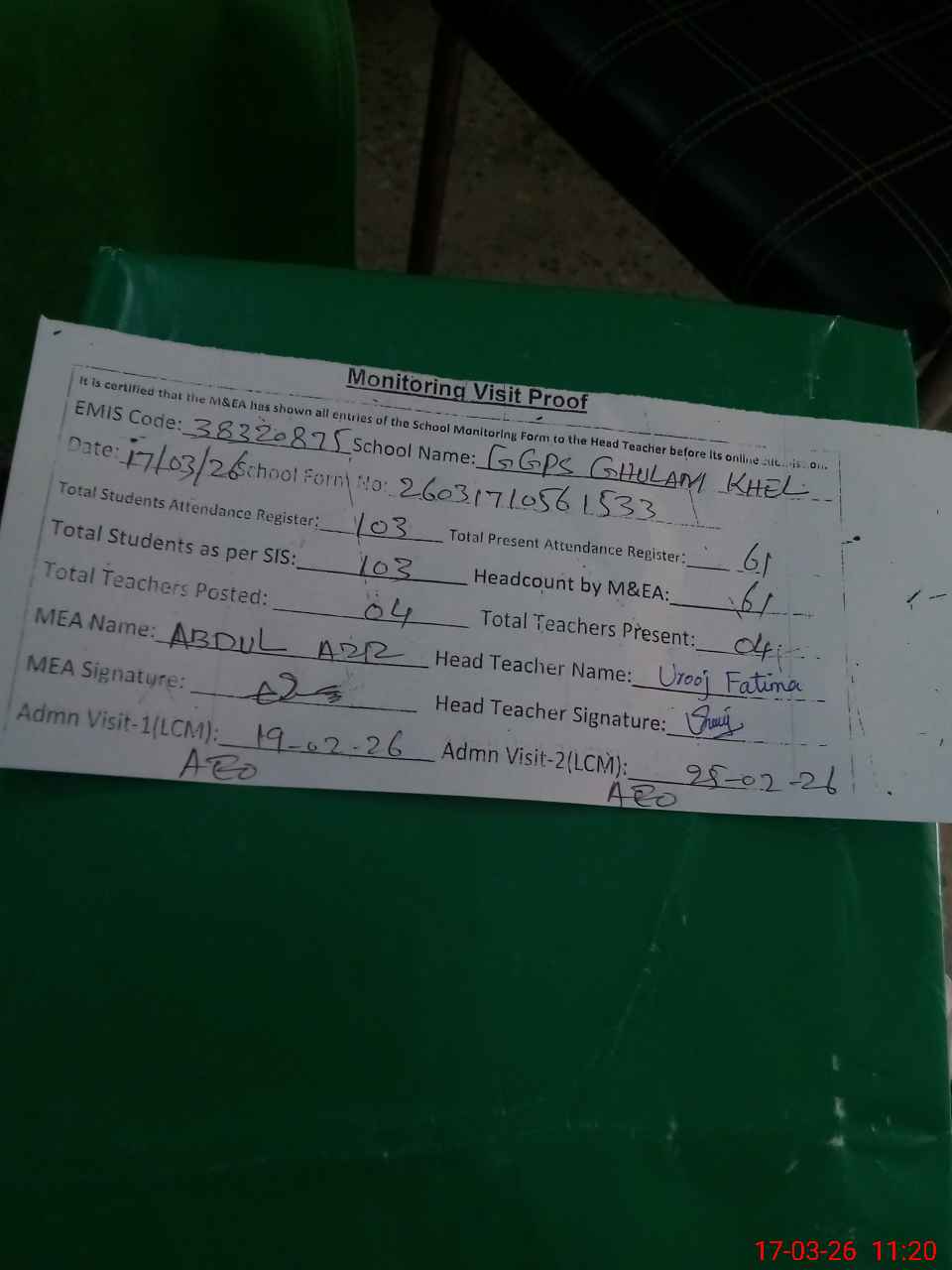 | EMIS Code: 38320875 | Name of School: GGPS GHULAM KHEL | |||