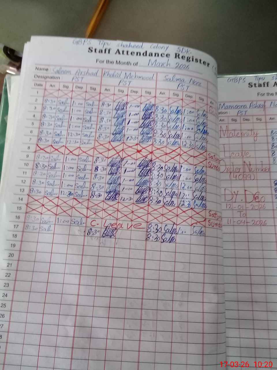 | 32**** | Ma**** As**** | PST Arts | Regular | 28 | 0 | 0 | 28 | 0 | 0 | 0 | 0 | 0 | Maternity |