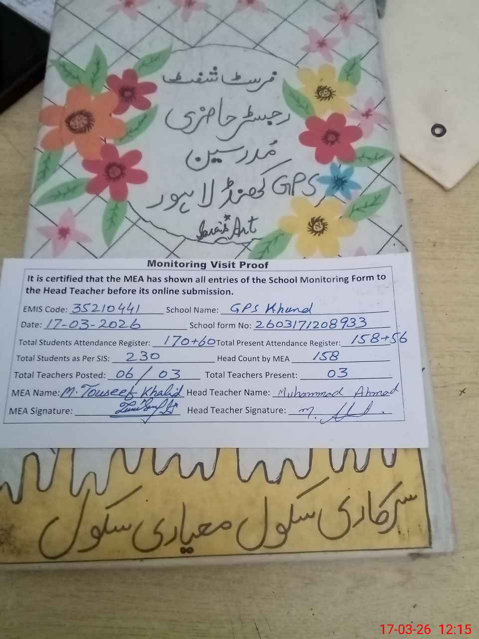 | EMIS Code: 35210441 | Name of School: GPS KHUND | |||