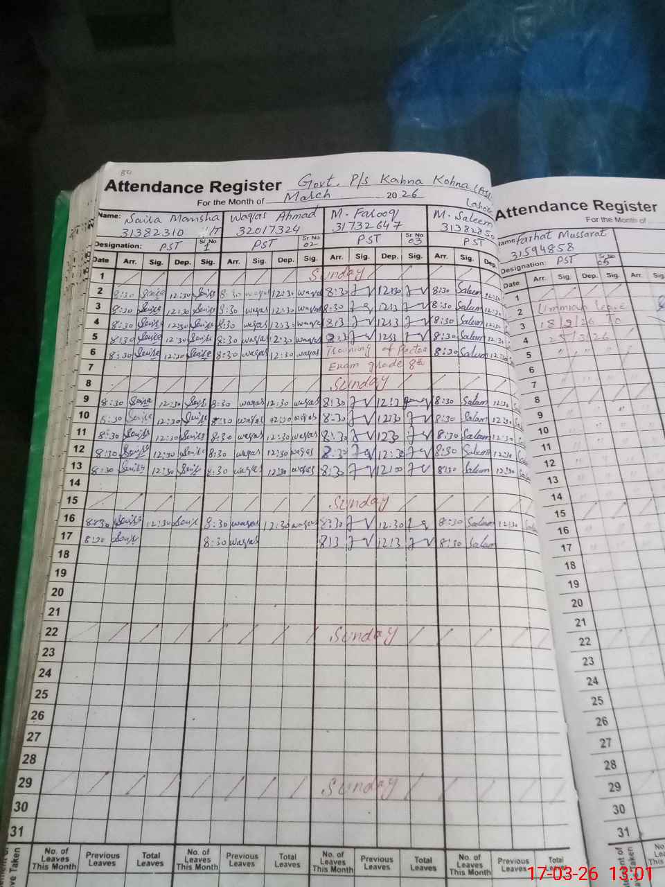 | CNIC | Full Name | Designation | R/C | Absence During Last Calender Month |