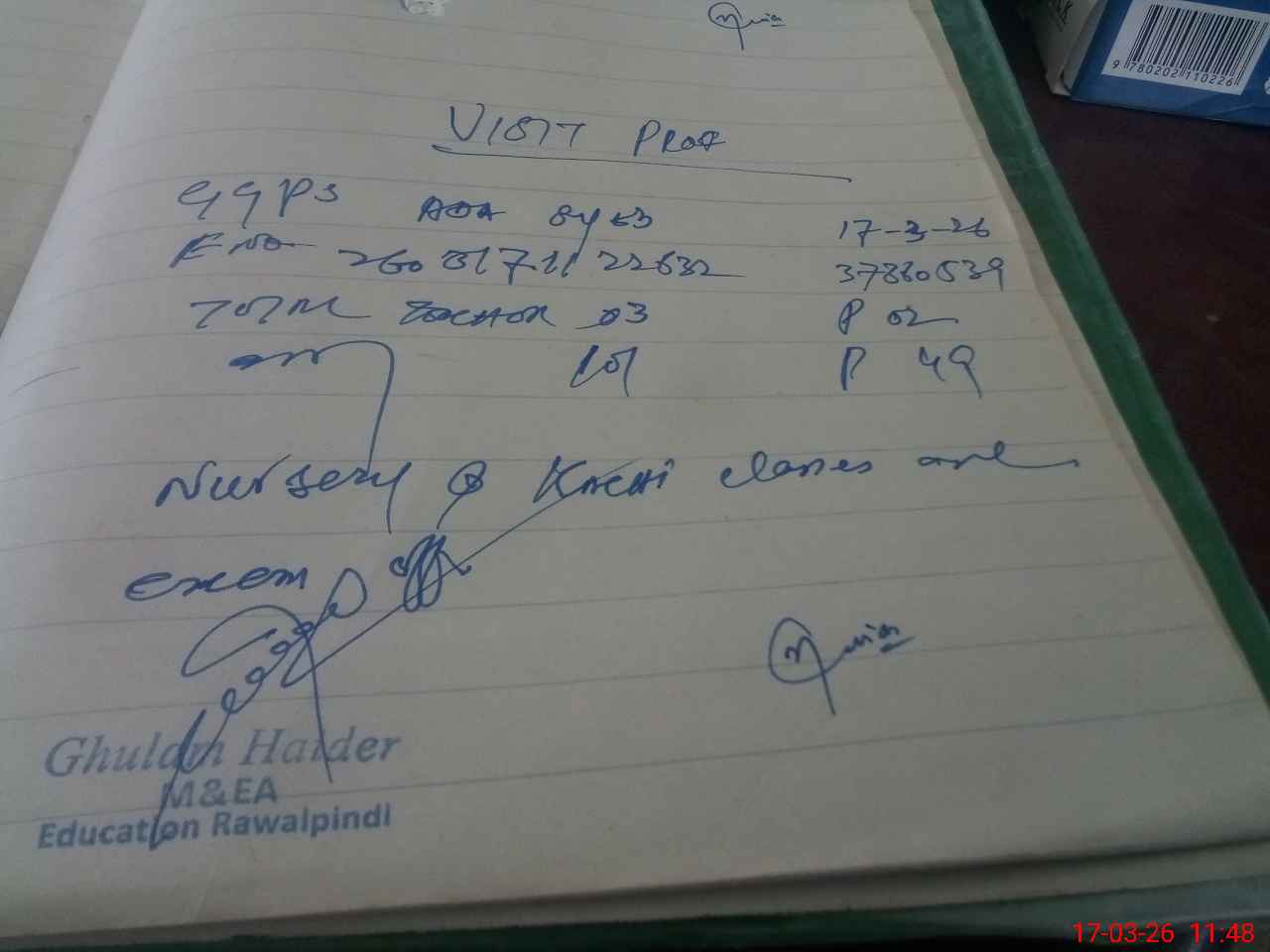 | Remarks (Use Separate Page if Required): Nursery and kachi classes are exam off | |||||