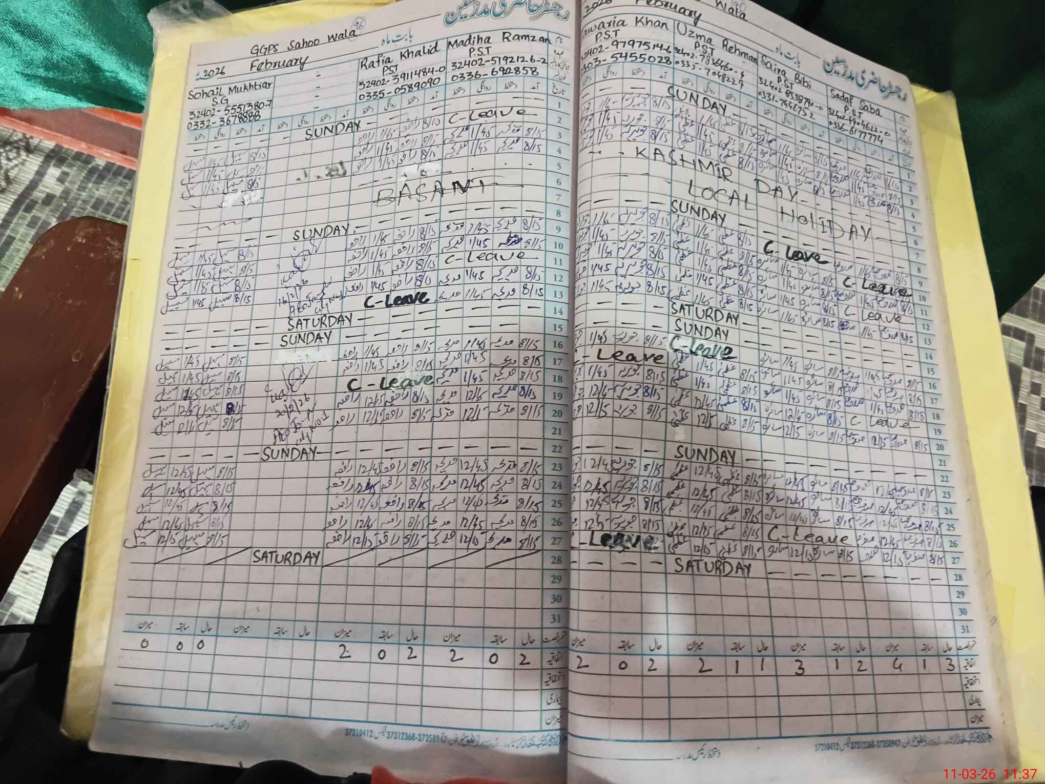 | Leave | Duty | Absent | Maternity | Medical | Ex- Pak |