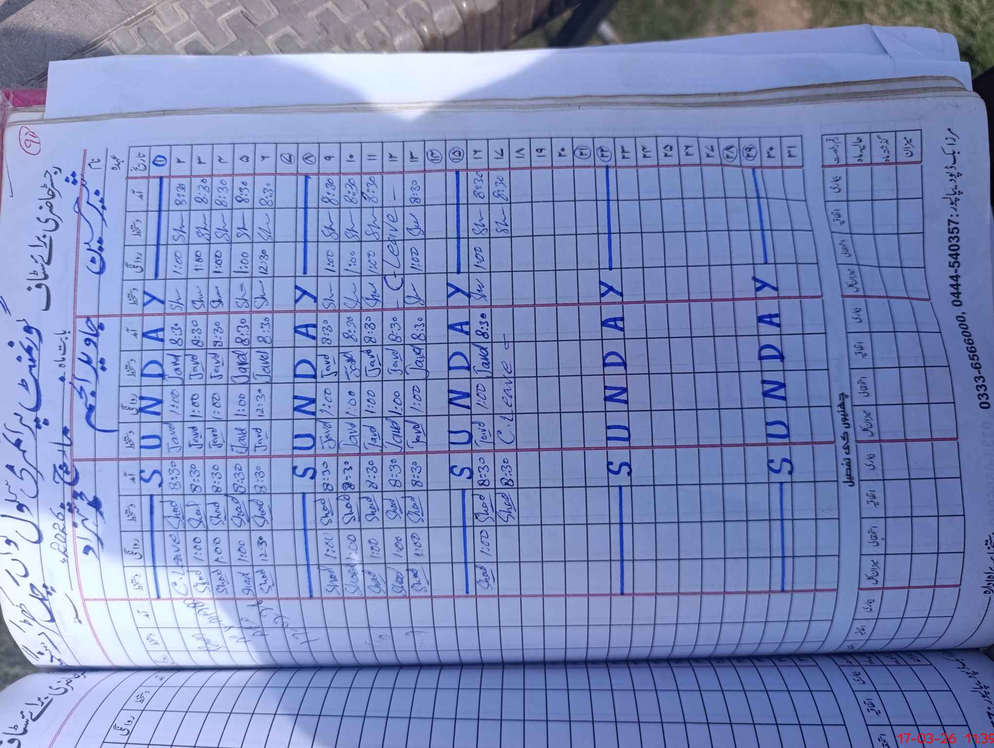 | CNIC | Full Name | Designation | R/C | Absence During Last Calender Month |