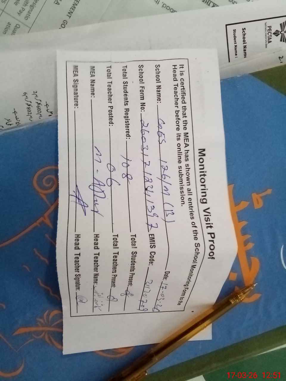 | EMIS Code: 31120709 | Name of School: GES CHAK NO.126/M AB | |||