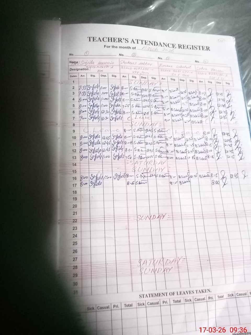 | 35**** | Te**** An**** | SST Science | Regular | 0 | 0 | 0 | 0 | 0 | 0 | 0 | 0 | 0 | Casual |