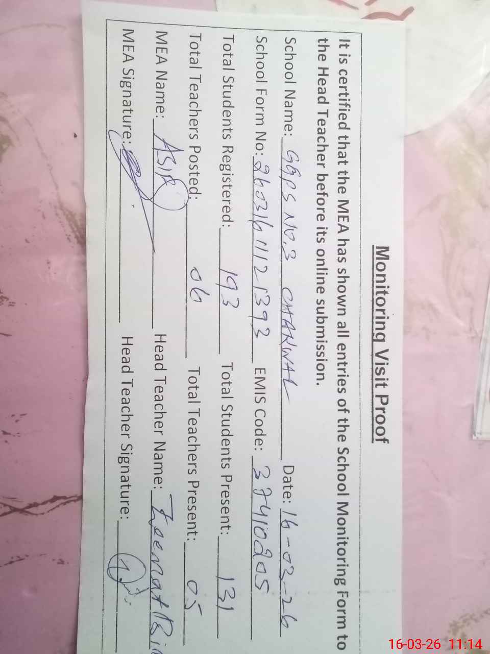 | EMIS Code: 37410205 | Name of School: GGPS MC NO. 3 CHAKWAL | |||
