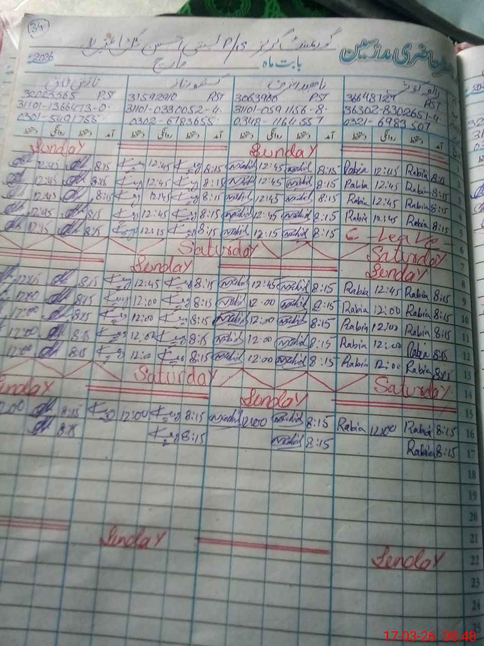 | CNIC | Full Name | Designation | R/C | Absence During Last Calender Month |