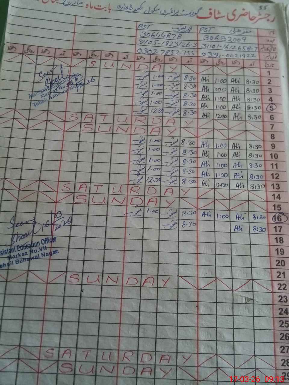 | Name: GH**** AL**** Designation: (School Headmaster's/Headmistress's) PST Phone/Cell Number: 03**** |