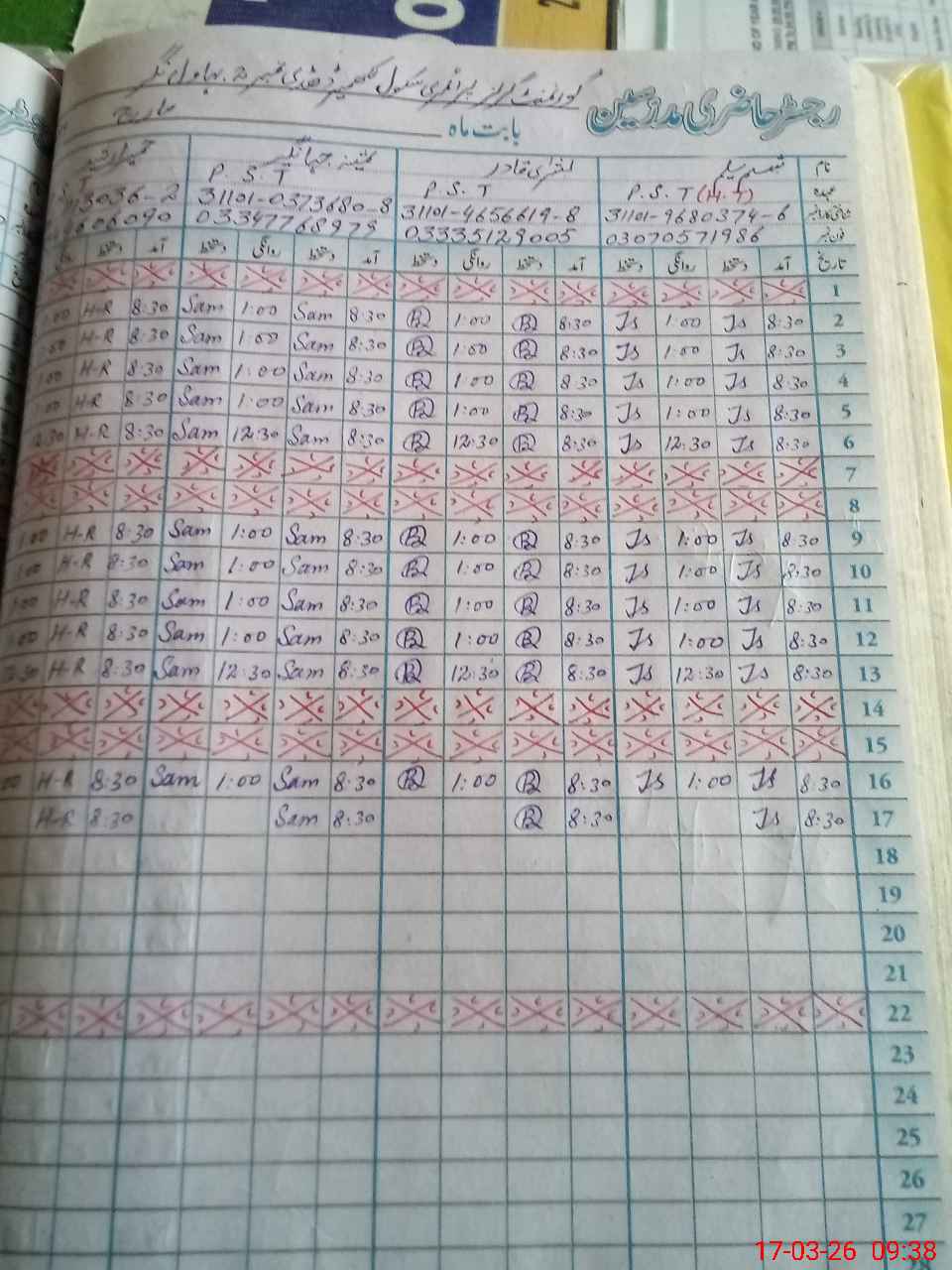 | Name: Ta**** Sa**** Designation: (School Headmaster's/Headmistress's) PST Phone/Cell Number: 03**** |