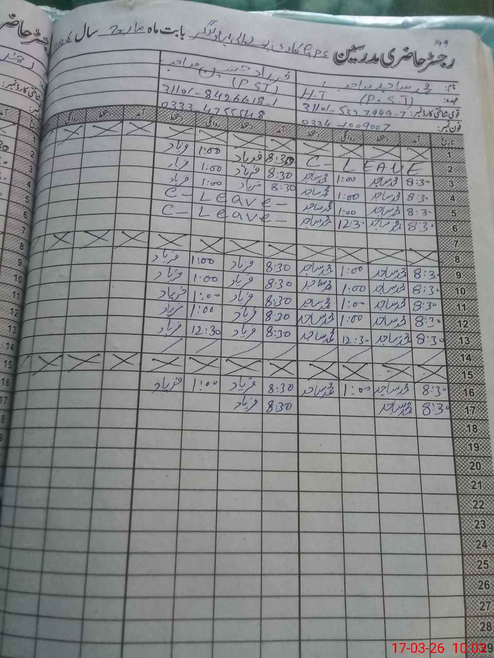 | Name: MSa**** Ra**** Designation: (School Headmaster's/Headmistress's) PST Phone/Cell Number: 03**** |