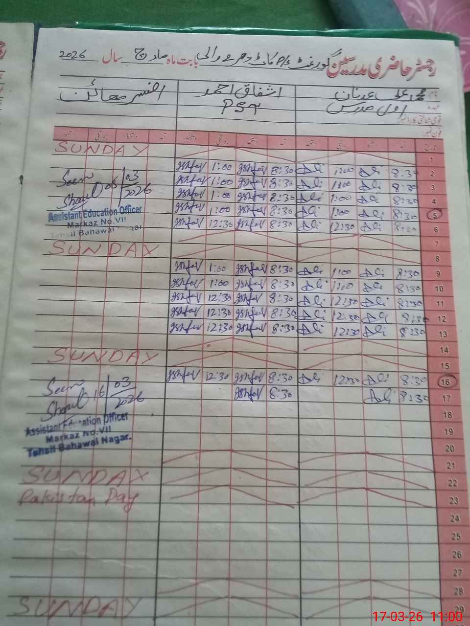 | Name: MU**** AL**** AD**** Designation: (School Headmaster's/Headmistress's) PST Phone/Cell Number: 03**** |
