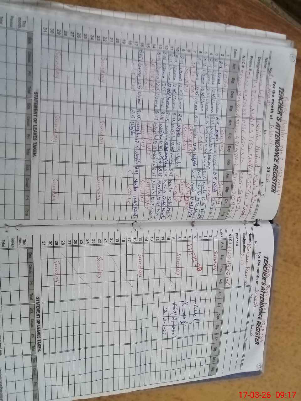 | Name: Uz**** sa**** Designation: (School Headmaster's/Headmistress's) ESE (SCI-MATH) Phone/Cell Number: 03**** |