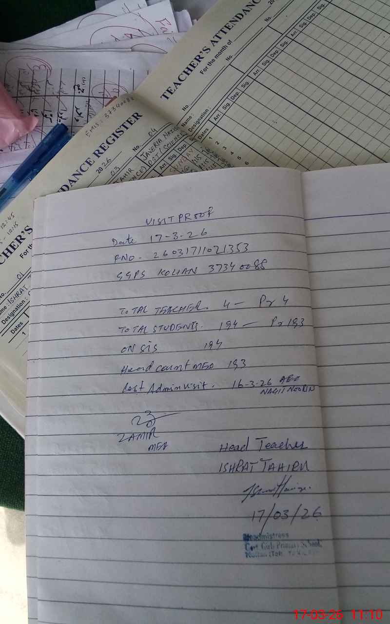 | Attendance Register | Head Teacher | MEA with School | Visit Proof |