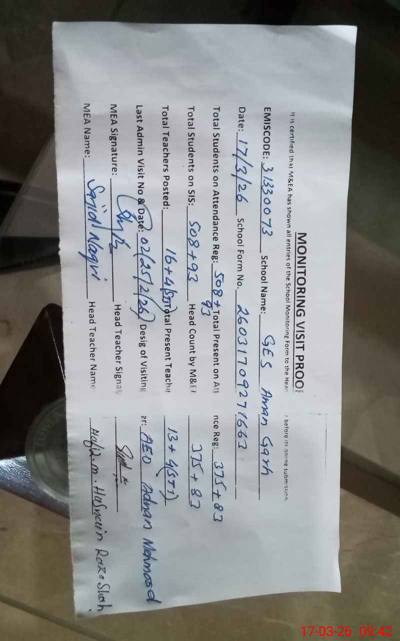 | EMIS Code: 31330073 | Name of School: GES AMAN GARH | |||