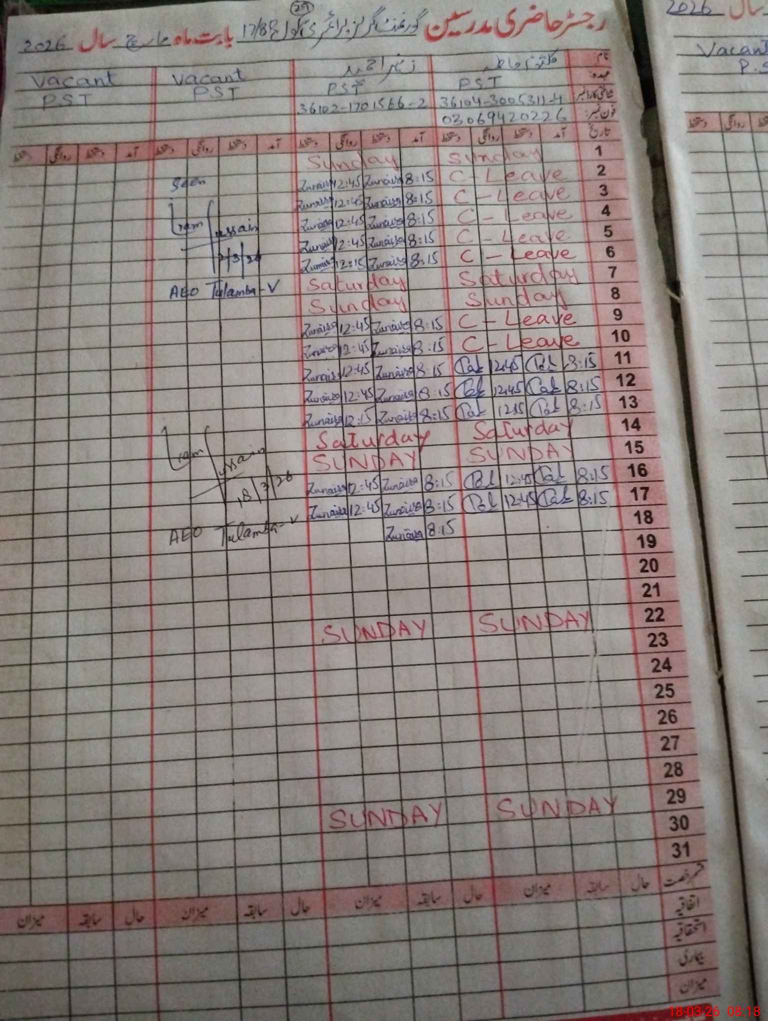 | Name: KA**** FA**** Designation: (School Headmaster's/Headmistress's) PST Phone/Cell Number: 03**** |