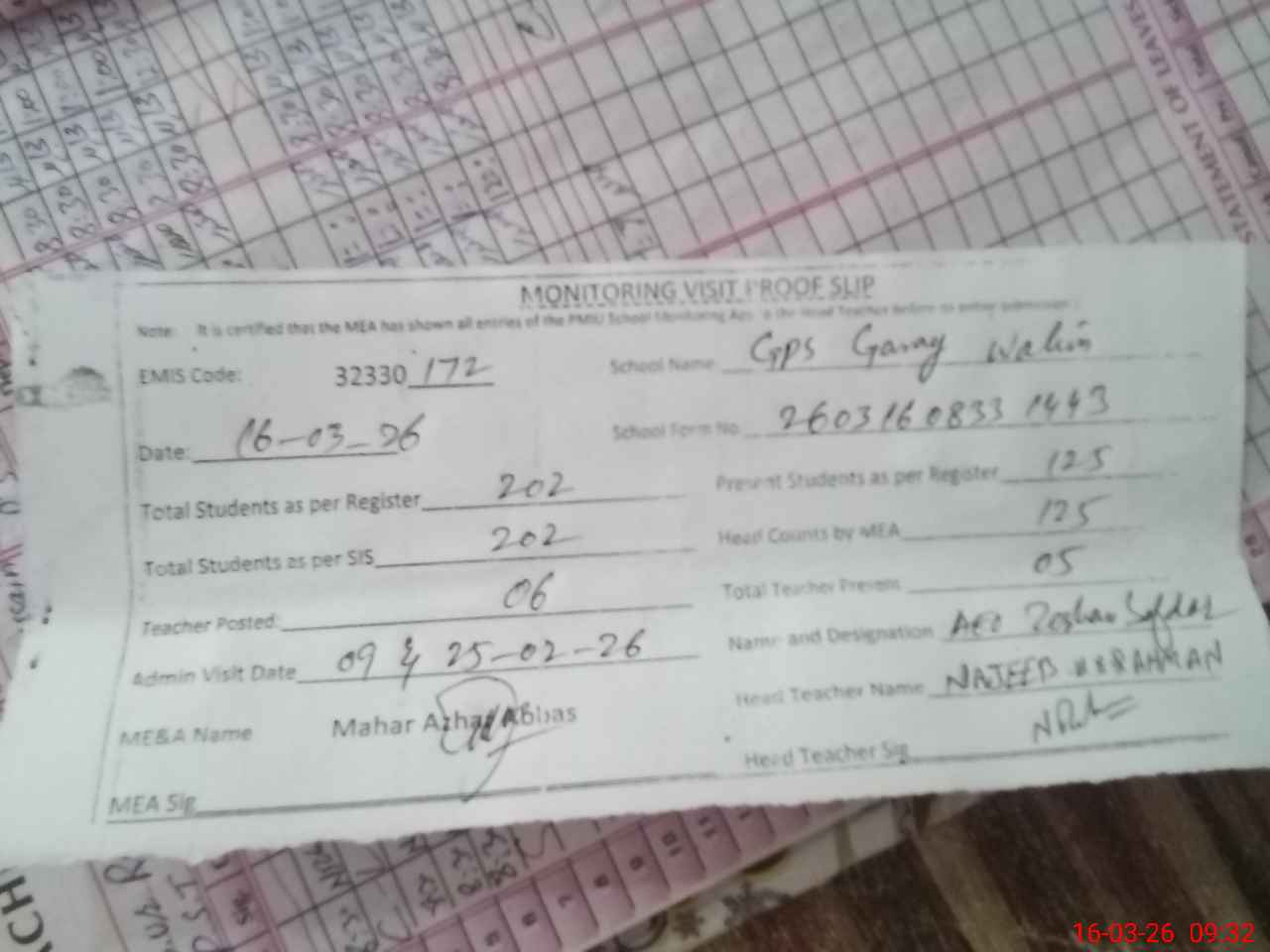 | EMIS Code: 32330172 | Name of School: GPS GAREY WAHIN | |||