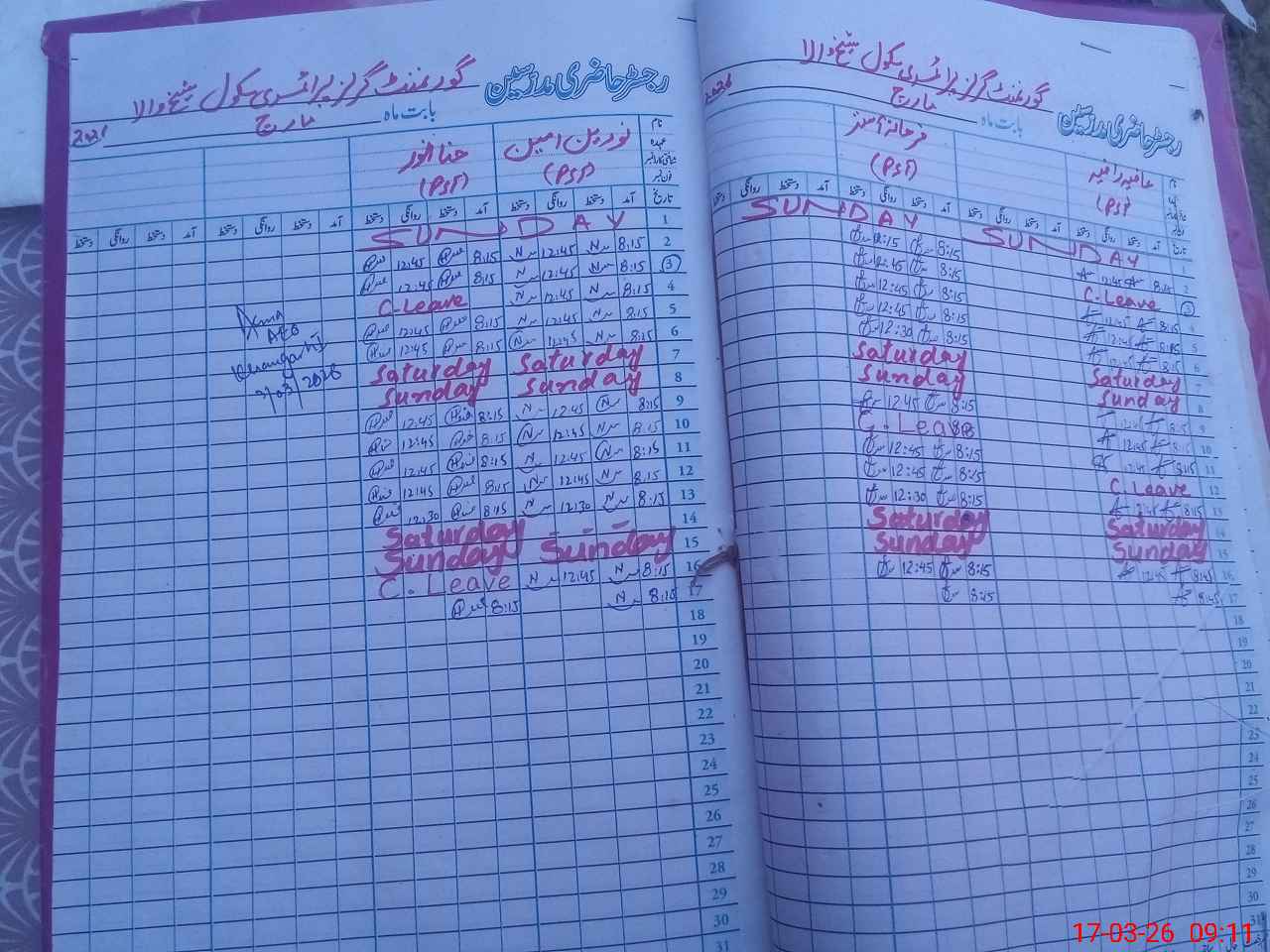 | CNIC | Full Name | Designation | R/C | Absence During Last Calender Month |