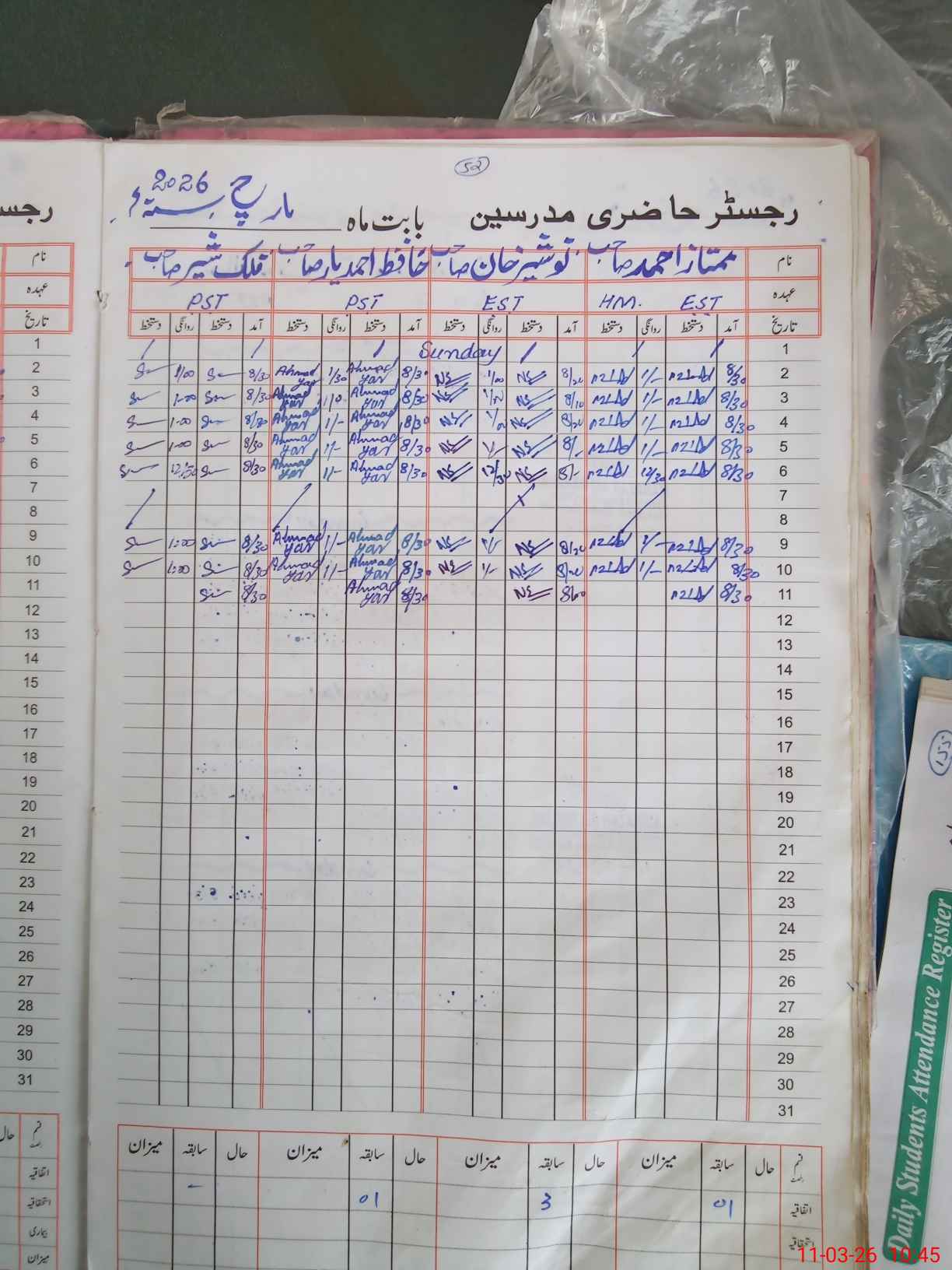 | CNIC | Full Name | Designation | R/C | Absence During Last Calender Month |