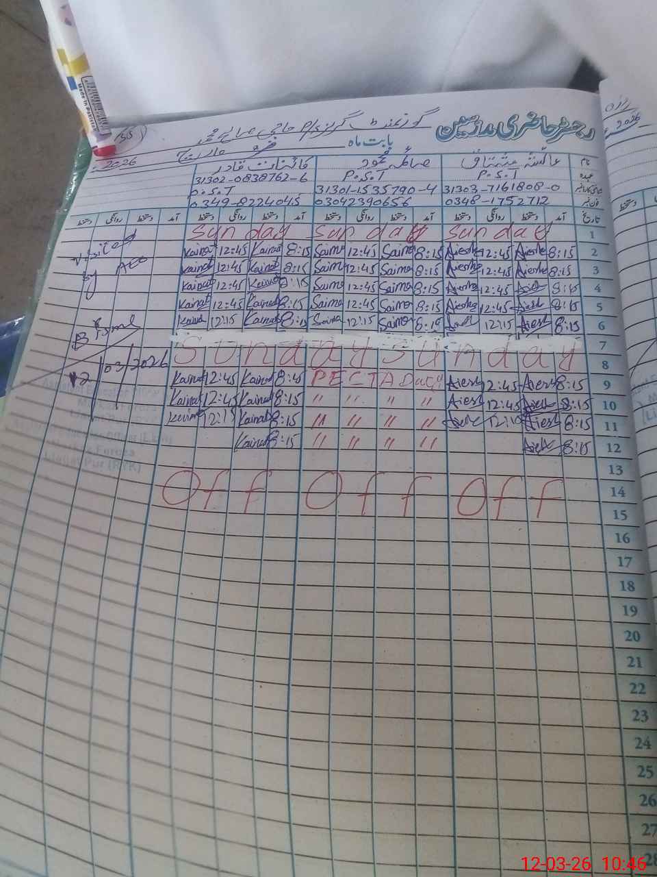 | Name: Ay**** Mu**** Designation: (School Headmaster's/Headmistress's) PST Phone/Cell Number: 03**** |