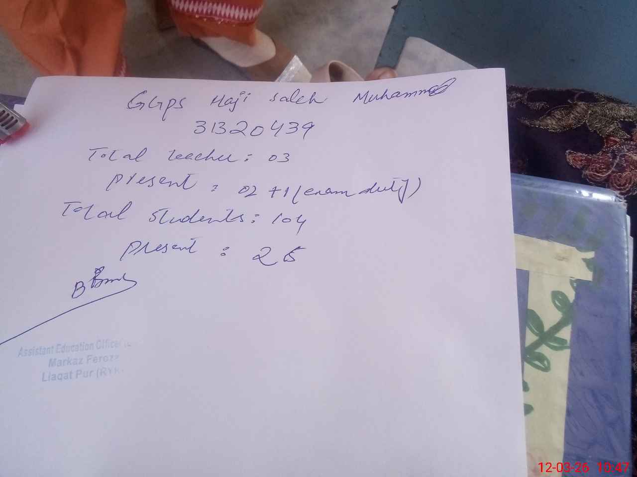 | EMIS Code: 31320439 | Name of School: GGPS HAJI SALEH MUHAMMAD FEROZA | |||
