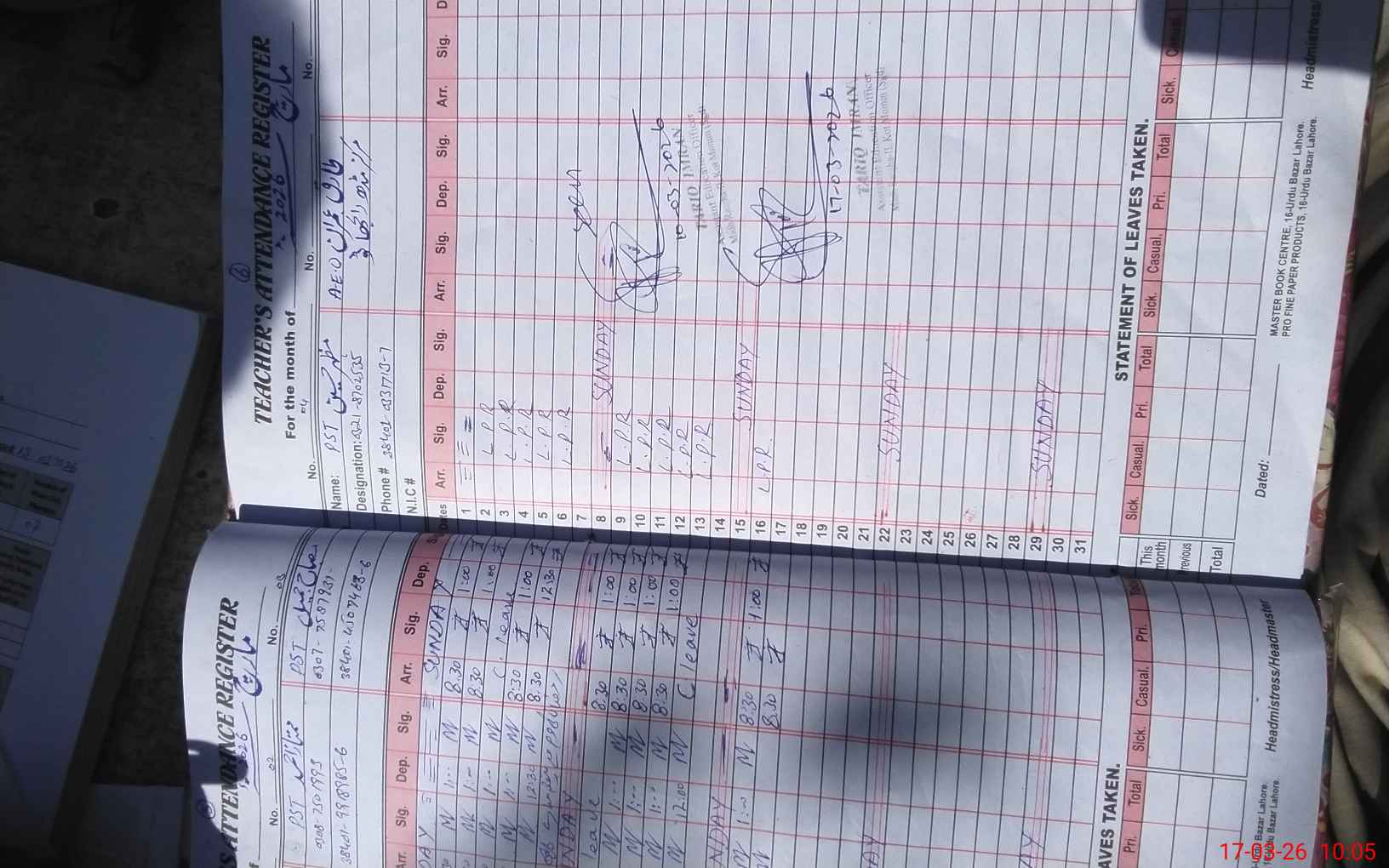 | Name: NA**** HA**** Designation: (School Headmaster's/Headmistress's) PST (ARTS) Phone/Cell Number: 03**** |