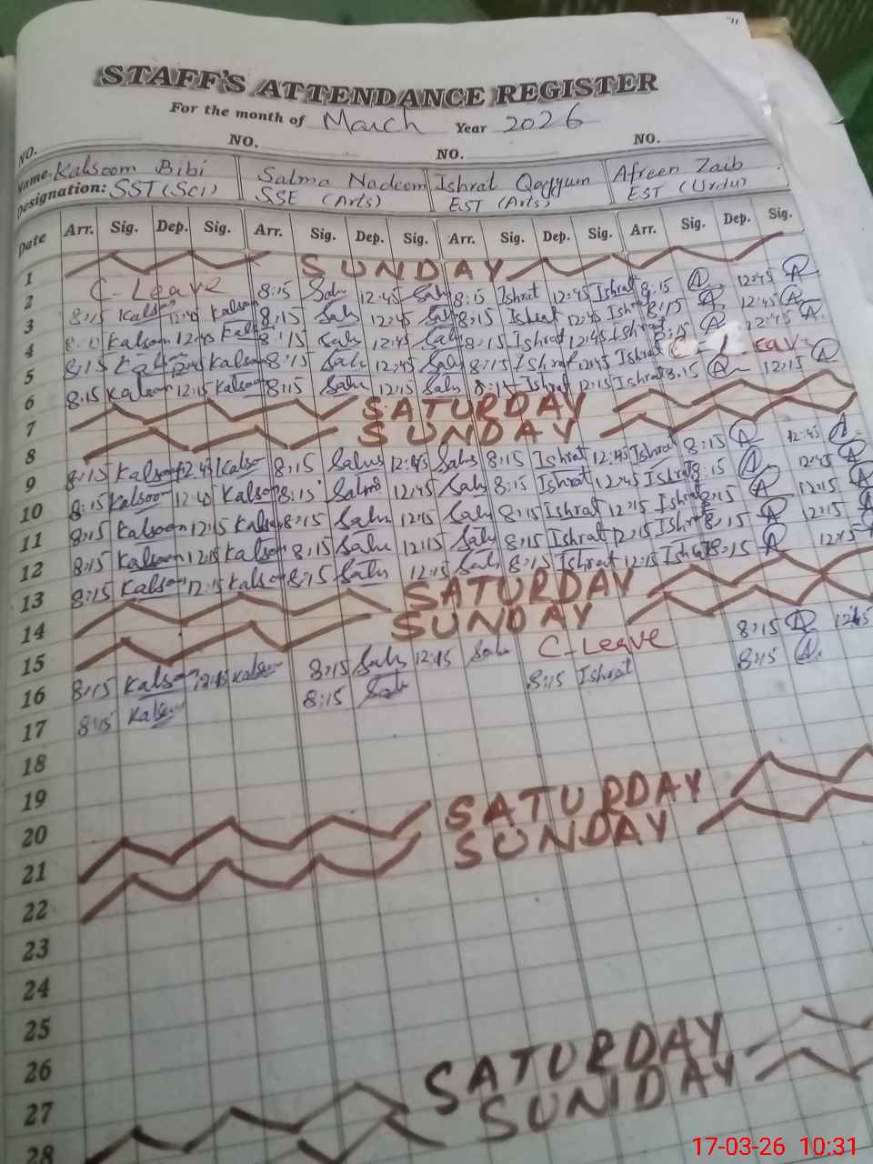 | CNIC | Full Name | Designation | R/C | Absence During Last Calender Month |