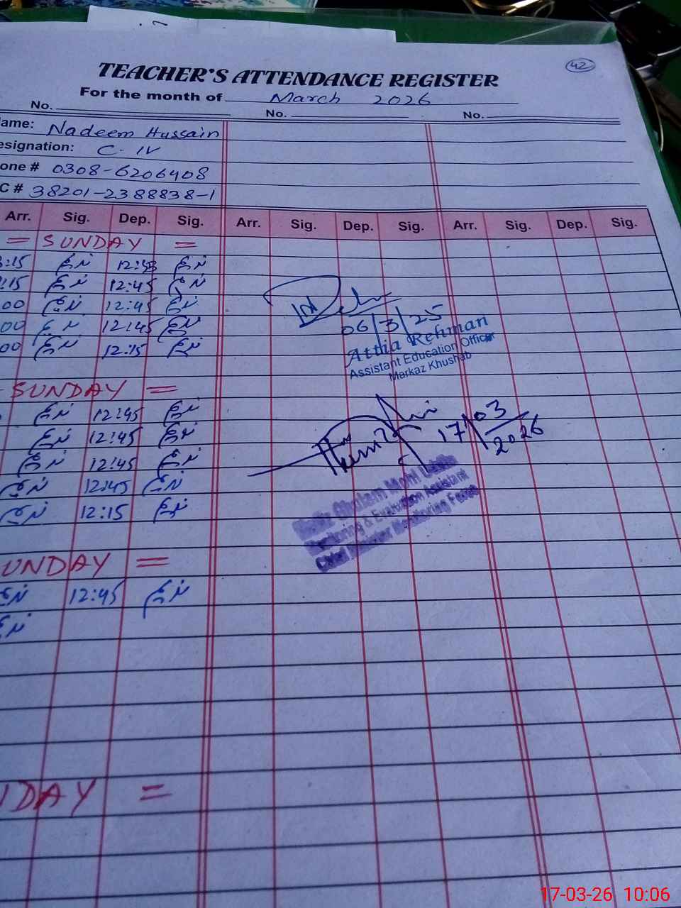 | Remarks (Use Separate Page if Required): last visit by AEO 06 March 2026 | |||||