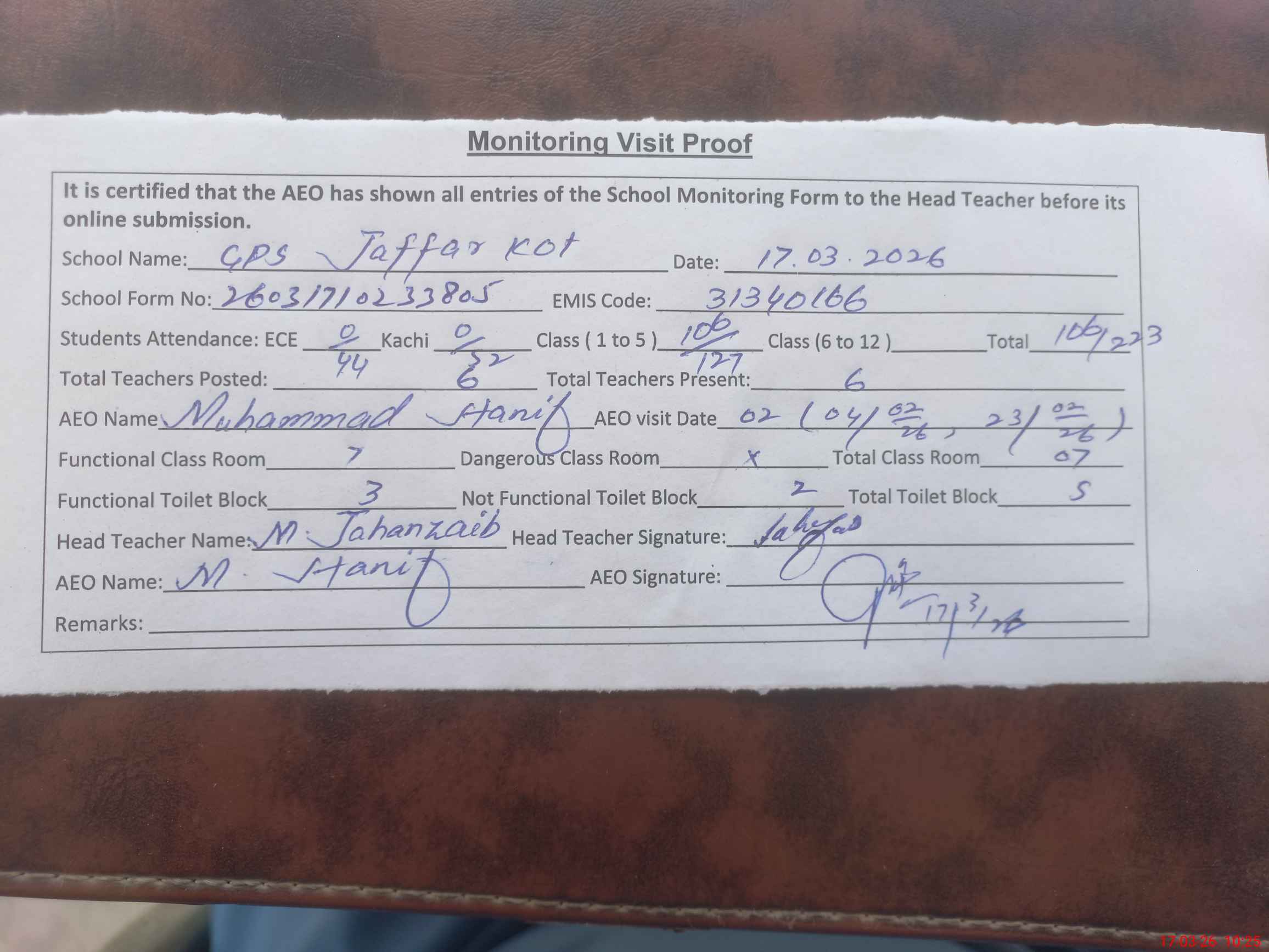 | EMIS Code: 31340166 | Name of School: GPS JAFAR KOT | |||