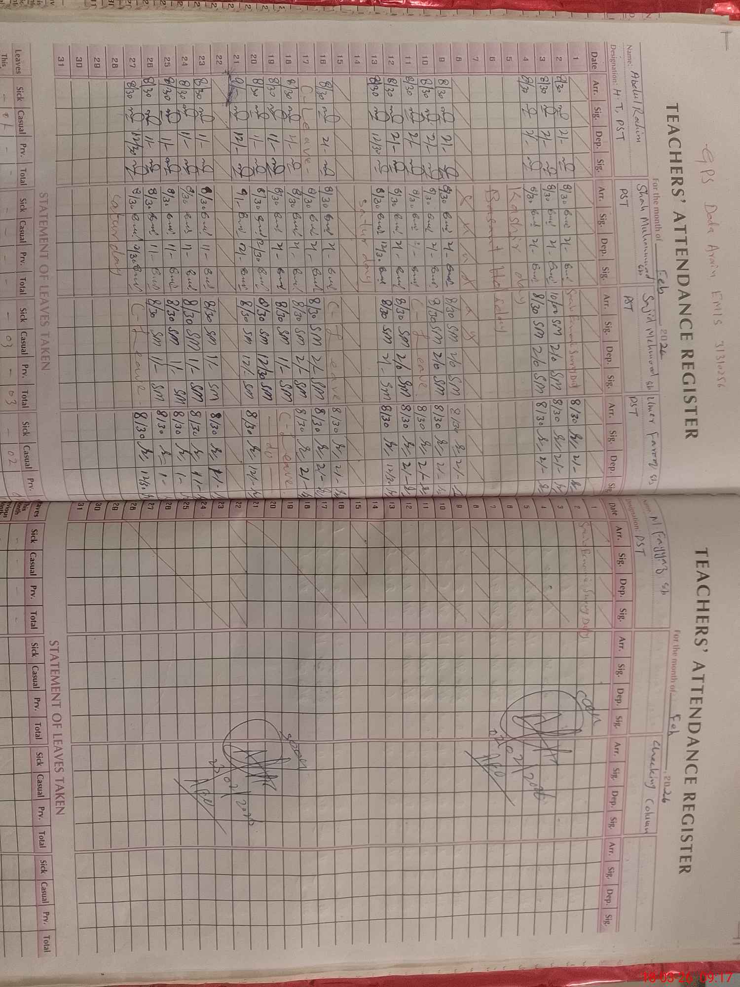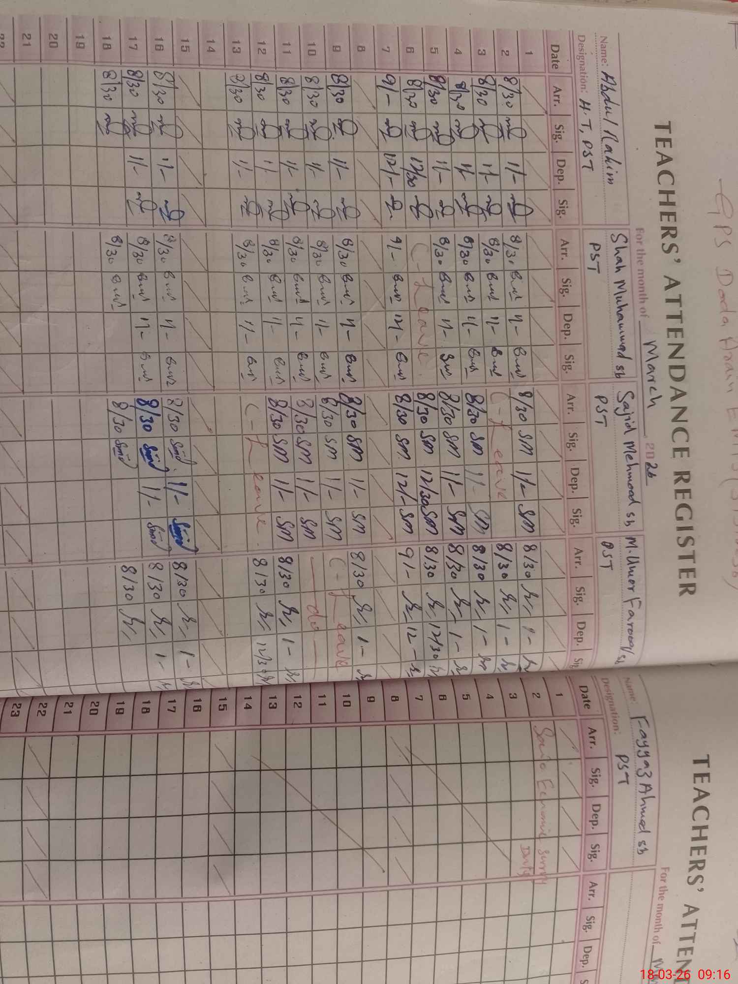 | Name: AB**** RA**** GH**** Designation: (School Headmaster's/Headmistress's) PST Phone/Cell Number: 03**** |